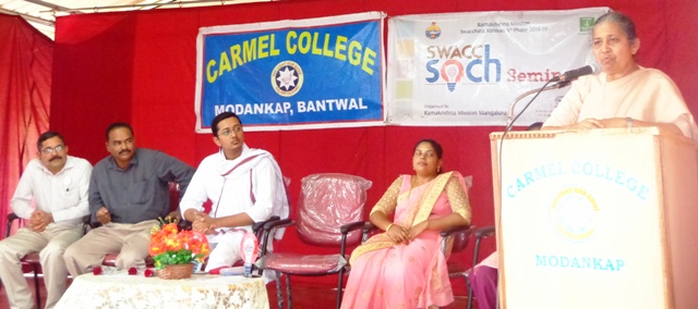 ಕಾರ್ಮೆಲ್ ಕಾಲೇಜು, ಮೊಡಂಕಾಪು ಇಲ್ಲಿನ ಐ.ಕ್ಯು.ಎ.ಸಿ ಸೆಲ್ ಹಾಗೂ ರಾಮಕೃಷ್ಣ ಮಿಶನ್ ನ ಜಂಟಿ ಆಶ್ರಯದಲ್ಲಿ ನಡೆದ ಸ್ವಚ್ಛ್ ಸೋಚ್ ಉಪನ್ಯಾಸ ಕಾರ್ಯಕ್ರಮದಲ್ಲಿ ವಿದ್ಯಾರ್ಥಿಗಳನ್ನು ಉದ್ದೇಶಿಸಿ ಮಾತನಾಡುತ್ತಿದ್ದರು. ಈ ಸಂದರ್ಭ ಉಪಸ್ಥಿತರಿದ್ದ ಭಾರತೀಯ ಸೇನೆಯ ನಿವೃತ್ತ ಅಧಿಕಾರಿ ಬೆಲ್ಲಳ ಗೋಪಿನಾಥ ರಾವ್ ವಿದ್ಯಾರ್ಥಿಗಳು ಸ್ವಯಂ ಪ್ರೇರಣೆಯಿಂದ ಸ್ವಚ್ಛ ಭಾರತದ ಪರಿಕಲ್ಪನೆಯನ್ನು ಅರ್ಥ ಮಾಡಿಕೊಂಡು ಇತರರಲ್ಲಿಯೂ ಸ್ವಚ್ಛತೆಯ ಬಗ್ಗೆ ಅರಿವು ಮೂಡಿಸಬೇಕೆಂದು ತಿಳಿಸಿದರು.