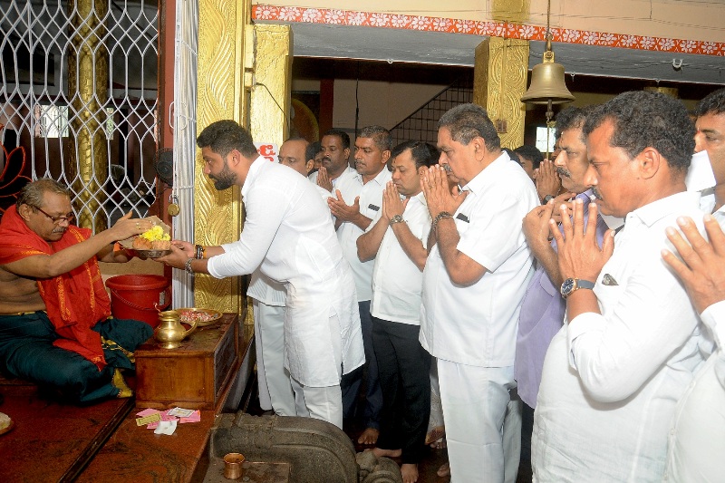 ಬೆಳಗ್ಗೆ ಬಿ.ಸಿ.ರೋಡಿನ ರಕ್ತೇಶ್ವರಿ ದೇವಸ್ಥಾನಕ್ಕೆ ಆಗಮಿಸಿದ ಮಿಥುನ್ ರೈ, ಅಲ್ಲಿ ಮಾಜಿ ಸಚಿವ ಬಿ.ರಮಾನಾಥ ರೈ ಅವರ ಜೊತೆಗೂಡಿ ಪ್ರಾರ್ಥನೆ ಸಲ್ಲಿಸಿದರು. ಈ ಸಂದರ್ಭ ಜಿಲ್ಲಾ ಪಂಚಾಯತ್ ಸದಸ್ಯ ಚಂದ್ರಪ್ರಕಾಶ ಶೆಟ್ಟಿ, ಬಂಟ್ವಾಳ ಬ್ಲಾಕ್ ಕಾಂಗ್ರೆಸ್ಅಧ್ಯಕ್ಷ ಬೇಬಿ ಕುಂದರ್, ಪಾಣೆಮಂಗಳೂರು ಬ್ಲಾಕ್ ಕಾಂಗ್ರೆಸ್ ಅಧ್ಯಕ್ಷ ಸುದೀಪ್ ಕುಮಾರ್ ಶೆಟ್ಟಿ, ಪಕ್ಷ ಪ್ರಮುಖರಾದ ಚಿತ್ತರಂಜನ್ ಶೆಟ್ಟಿ, ಲೋಲಾಕ್ಷ, ಲೋಕೇಶ ಸುವರ್ಣ, ಜೆಡಿಎಸ್ ಕ್ಷೇತ್ರಾಧ್ಯಕ್ಷ ಬಿ.ಮೋಹನ್ ಮತ್ತಿತರರು ಉಪಸ್ಥಿತರಿದ್ದರು. ಬಳಿಕ ಮೊಡಂಕಾಪು ಚರ್ಚ್, ನಂದಾವರ ದೇವಸ್ಥಾನ, ಪಣೋಲಿಬೈಲ್ ಕ್ಷೇತ್ರ, ನೆಟ್ಲ ಕ್ಷೇತ್ರ ಸಹಿತ ವಿವಿಧ ಧಾರ್ಮಿಕ ಕ್ಷೇತ್ರಗಳಿಗೆ ತೆರಳಿದ ಮಿಥುನ್ ರೈ, ಕಲ್ಲಡ್ಕ ಜಂಕ್ಷನ್ ಪೇಟೆಯಲ್ಲಿ ಪಾದಯಾತ್ರೆ ನಡೆಸಿದರು. ಬಳಿಕ ಕ್ಷೇತ್ರಾದ್ಯಂತ ಹಲವು ಕಡೆಗಳಿಗೆ ಸಂಚರಿಸಿ, ಮತಯಾಚನೆ ನಡೆಸುವುದರೊಂದಿಗೆ ಪ್ರಾರ್ಥನಾ ಮಂದಿರಗಳಿಗೆ ತೆರಳಿ ದೇವರಿಗೆ ಪ್ರಾರ್ಥನೆ ಸಲ್ಲಿಸಿದರು. ಯುವ ಕಾಂಗ್ರೆಸ್ ಅಧ್ಯಕ್ಷ ಪ್ರಶಾಂತ್ ಕುಲಾಲ್, ಎಪಿಎಂಸಿ ಅಧ್ಯಕ್ಷ ಪದ್ಮನಾಭ ರೈ, ಪ್ರಮುಖರಾದ ಎ.ಸಿ.ಭಂಡಾರಿ, ಸಂಜೀವ ಪೂಜಾರಿ, ಅಬ್ಬಾಸ್ ಆಲಿ, ಜಿಪಂ ಸದಸ್ಯೆ ಮಂಜುಳಾ ಮಾವೆ ಮತ್ತಿತರರು ಮಿಥುನ್ ರೈ ಅವರೊಂದಿಗೆ ಹೆಜ್ಜೆ ಹಾಕಿದರು.