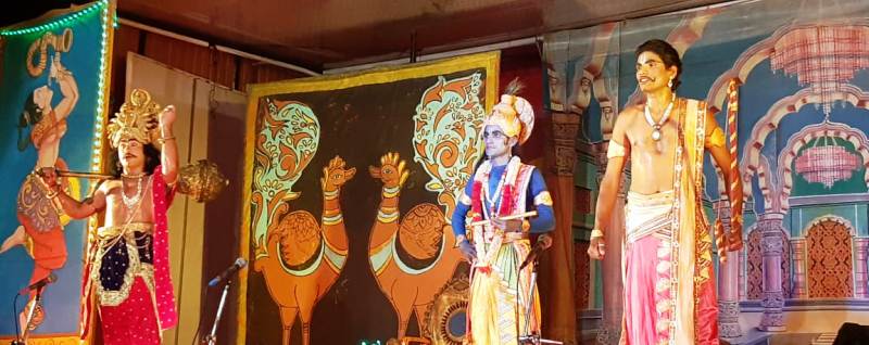 ಬಳಿಕ ಸುಮಾರು ಎರಡೂವರೆ ತಾಸು ಡಾ.ಎಂ.ಗಣೇಶ್ ಹೆಗ್ಗೋಡು ಪರಿಕಲ್ಪನೆ ಮತ್ತು ನಿರ್ದೇಶನದ ಈ ನಾಟಕವನ್ನು ನುರಿತ ಕಲಾವಿದರನ್ನು ಒಳಗೊಂಡ ಯುವಕರ ತಂಡ ದಶಕಗಳ ಹಿಂದಿನ ಕಂಪನಿ ನಾಟಕಗಳಲ್ಲಿರುವ ಪರಿಕರಗಳನ್ನು ಬಳಸಿ ಅಭಿನಯಿಸಿ ಗಮನ ಸೆಳೆದರು. ಕುರುಕ್ಷೇತ್ರ ಯುದ್ಧದ ಪೂರ್ವಭಾವಿ ಸನ್ನಿವೇಶಗಳು ಹಾಗೂ ದ್ರೋಣ, ಅಭಿಮನ್ಯುವಿನ ಅವಸಾನ, ಗದಾಯುದ್ಧದ ಸನ್ನಿವೇಶಗಳನ್ನು ಕಲಾವಿದರು ಕಟ್ಟಿಕೊಟ್ಟರು. ದಾಯಾದಿ ಕಲಹ, ಅಸೂಯೆ, ಮತ್ಸರ, ಸೇಡು ಮೊದಲಾದ ಮನಸ್ಸಿನ ಪಲ್ಲಟಗಳು, ನೋವು, ಕುತಂತ್ರ, ಕುಂತಿ, ಗಾಂಧಾರಿಯ ಪುತ್ರ ವ್ಯಾಮೋಹದಂಥ ಸನ್ನಿವೇಶಗಳು ಇಂದಿಗೂ ಪ್ರಸ್ತುತ ಎಂಬ ಭಾವನೆ ಮೂಡಿಸುವಂತೆ ಮಾಡಲು ಯಶಸ್ವಿಯಾದವು. ನಾಟಕ ಪ್ರದರ್ಶನದ ಬಳಿಕ ಕಲಾವಿದ ಮಂಜು ಸಿರಿಗೇರಿ ನಾಟಕದ ಕುರಿತು ಮಾಹಿತಿ ನೀಡಿದರು. ನ್ಯಾಯವಾದಿ ಅಜಿತ್ ಕುಮಾರ್ ಅಡ್ಡೂರು ಅನಿಸಿಕೆ ವ್ಯಕ್ತಪಡಿಸಿದರು.
