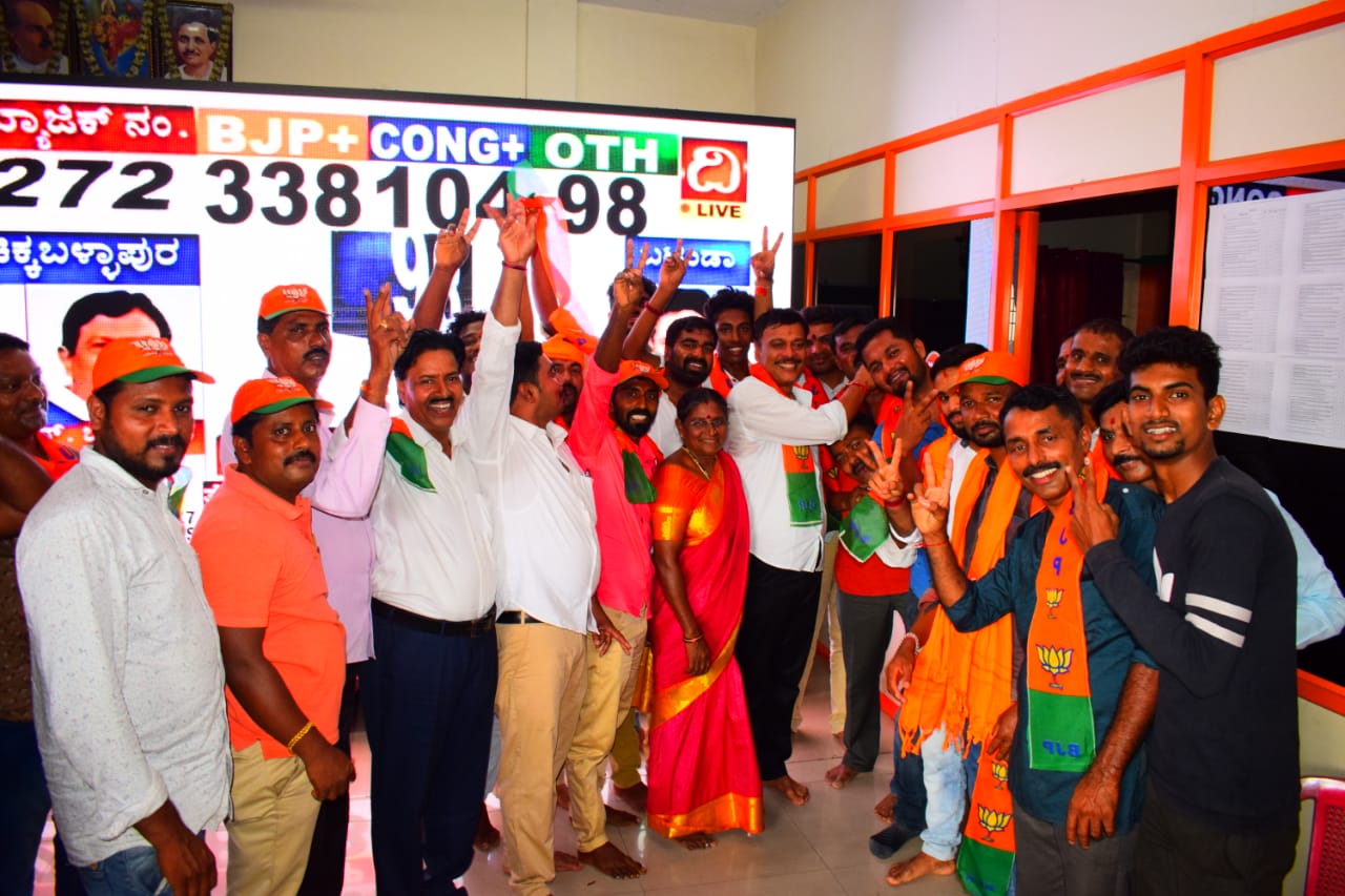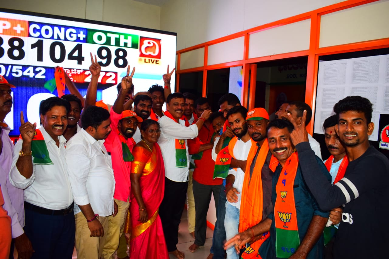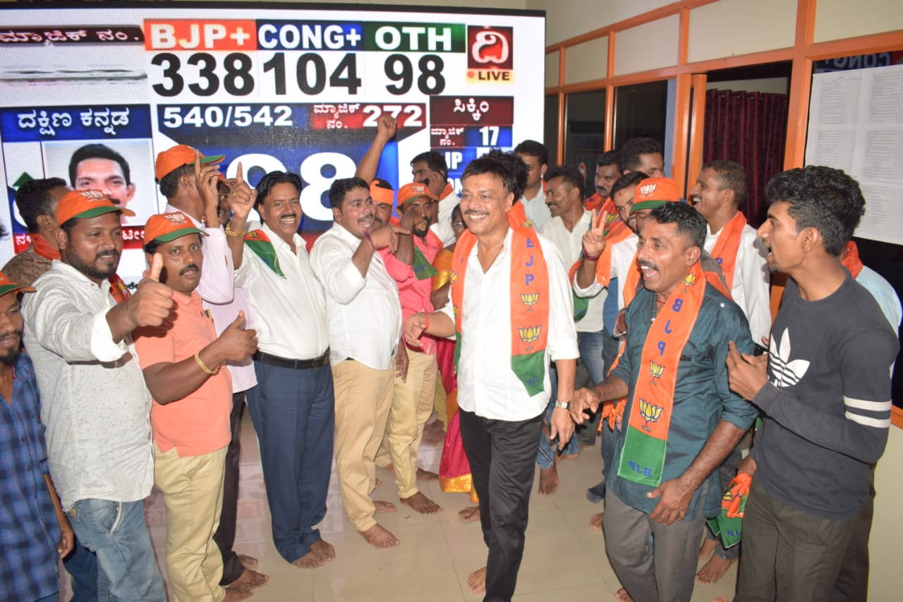 ದಕ್ಷಿಣ ಕನ್ನಡ ಲೋಕಸಭೆ ಕ್ಷೇತ್ರದಲ್ಲಿ ನಳಿನ್ ಭಾರೀ ಮುನ್ನಡೆ ಪಡೆಯುತ್ತಿದ್ದಂತೆ ಬಿಜೆಪಿ ಕಚೇರಿಗಳಲ್ಲಿ ಸಂಭ್ರಮಾಚರಣೆ ನಡೆಯಿತು. ಬಂಟ್ವಾಳ ಬಿಜೆಪಿ ಕಚೇರಿಯಲ್ಲಿ ಶಾಸಕ ರಾಜೇಶ್ ನಾಯ್ಕ್ ನೇತೃತ್ವದಲ್ಲಿ ಎಲ್.ಇ.ಡಿ. ಪರದೆಯಲ್ಲಿ ಕಾರ್ಯಕರ್ತರು ಚುನಾವಣಾ ಫಲಿತಾಂಶ ವೀಕ್ಷಿಸಿದರು. ದೇಶ, ರಾಜ್ಯ ಮತ್ತು ಕ್ಷೇತ್ರದಲ್ಲ ಬಿಜೆಪಿಗೆ ವಿಜಯ ಎಂಬ ಮಾಹಿತಿ ಬರುತ್ತಿದ್ದಂತೆ ಜಯಘೋಷಗಳೊಂದಿಗೆ ಸಂಭ್ರಮಾಚರಿಸಿದರು. ಸಿಹಿ ಹಂಚಿ ಸಂಭ್ರಮಿಸಿದರು. ಜಿಪಂ ಸದಸ್ಯೆ ಕಮಲಾಕ್ಷಿ ಪೂಜಾರಿ ಕ್ಷೇತ್ರಾಧ್ಯಕ್ಷ ದೇವದಾಸ ಶೆಟ್ಟಿ, ಪ್ರಮುಖರಾದ ಹರೀಶ್ ರಾಯಿ, ಆನಂದ ಶಂಭೂರು ಮತ್ತಿತರರು ಇದ್ದರು.