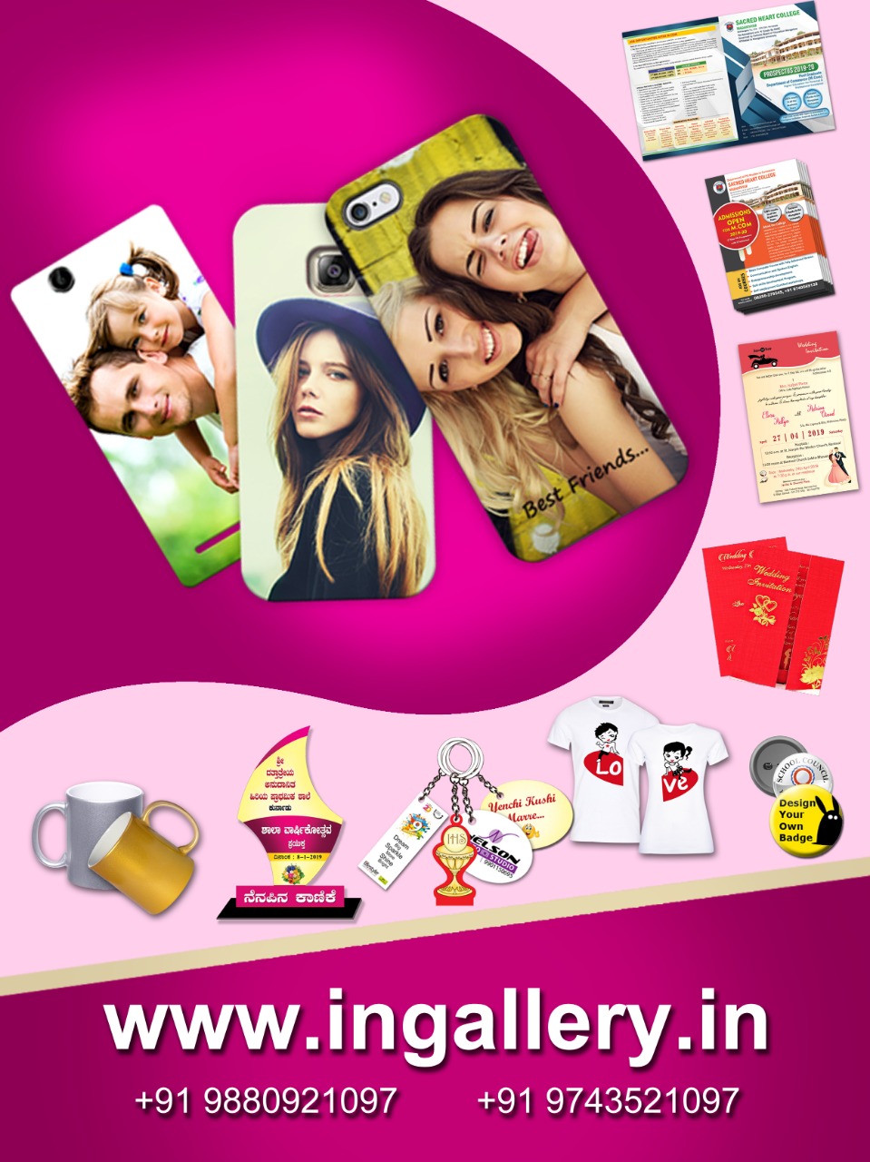 - ಹಲವಾರು ಸಂತೃಪ್ತ ಗ್ರಾಹಕರನ್ನು ಹೊಂದಿರುವ, ಬಿ.ಸಿರೋಡ್ನ ಹೃದಯ ಭಾಗದಲ್ಲಿ ಈಗಾಗಲೇ ಡಿಜಿಟಲ್ ಪ್ರಿಂಟಿಂಗ್ ಕ್ಷೇತ್ರದಲ್ಲಿ ತಮ್ಮ ಸ್ಥಾನವನ್ನು ಭದ್ರಗೊಳಿಸಿರುವ ಇನ್ಗ್ಯಾಲರಿ ಸಂಸ್ಥೆಯು ಈ ಕೆಳಗಿನ ಸೇವೆಗಳನ್ನು ನೀಡುತ್ತಿದೆ.
