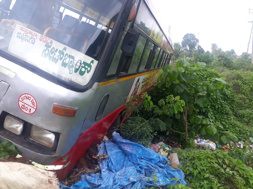 ಘಟನೆಯಿಂದ ಬಸ್ನಿರ್ವಾಹಕನೋರ್ವ ಗಾಯಗೊಂಡಿದ್ದು, ಪ್ರಯಾಣಿಕರೆಲ್ಲರು ಅಪಾಯದಿಂದ ಪಾರಾಗಿದ್ದಾರೆ.