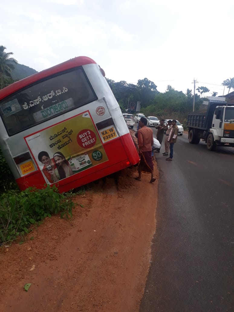 ಎದುರಿನಿಂದ ಓವರ್ ಟೇಕ್ ಮಾಡಿ ಬರುತ್ತಿದ್ದ ಟ್ಯಾಂಕರ್ಗೆ ದಾರಿಕೊಡಲು ಹೋಗಿ ಚಾಲಕನ ನಿಯಂತ್ರಣ ತಪ್ಪಿದ ಸರಕಾರಿ ಬಸ್ಸೊಂದು ರಸ್ತೆ ಬದಿಯ ಚರಂಡಿಗಿಳಿದ ವಾಲಿನಿಂತ ಘಟನೆ ಬಂಟ್ವಾಳ ತಾಲೂಕಿನ ಮಾಣಿ ಸಮೀಪ ಬುಧವಾರ ನಡೆದಿದೆ.