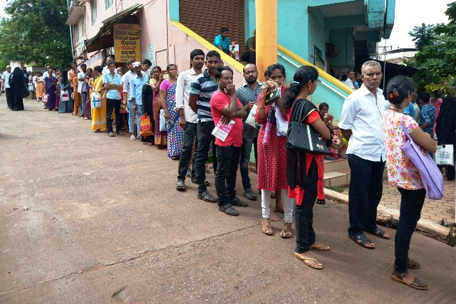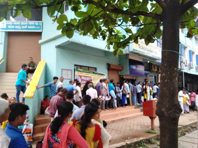 ಬಿ.ಸಿ.ರೋಡಿನಲ್ಲಿರುವ ಸ್ಟೇಟ್ ಬ್ಯಾಂಕ್ ಆಫ್ ಇಂಡಿಯಾದ ಎದುರು ಆರಂಭಗೊಂಡ ಸಾಲು ಕೋರ್ಟ್ ಗೇಟಿನವರೆಗೂ ಶನಿವಾರ ಬೆಳಗ್ಗೆ ವ್ಯಾಪಿಸಿತ್ತು. ಬೆಳಗ್ಗೆ 6 ಗಂಟೆಯಿಂದ 10.30ರವರೆಗೆ ಉದ್ದದ ಸಾಲು ನೋಡುಗರ ಹುಬ್ಬೇರಿಸಿದರೆ, ಮಗುವನ್ನೆತ್ತಿ ನಿಂತ ಮಹಿಳೆಯರು, ಮಳೆ ಬರುತ್ತದೋ ಅಥವಾ ಬಿಸಿಲು ಕಾಯುತ್ತದೆಯೋ ಎಂದು ಆತಂಕದಲ್ಲಿ ನಿಂತ ವೃದ್ಧರು.. ಹೀಗೆ ಸಾಲು ಉದ್ದವಾಗುತ್ತಿತ್ತು.
