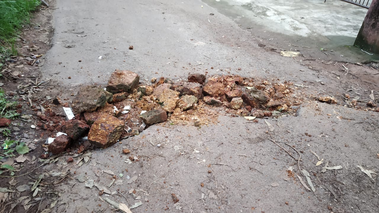 ಕುಡಿಯುವ ನೀರು ಸರಬರಾಜು ಯೋಜನೆಯನ್ವಯ ಪೈಪ್ ಲೈನ್ ಗಾಗಿ ಅಗೆದು ಮುಚ್ಚದೇ ಇರುವ ಕಾರಣ ಓಡಾಟಕ್ಕೆ ತೊಂದರೆಯಾಗುತ್ತಿರುವ ಹಿನ್ನೆಲೆಯಲ್ಲಿ ಸ್ಥಳೀಯರೇ ಶ್ರಮದಾನದ ಮೂಲಕ ಕಲ್ಲು ಮಣ್ಣು ಹಾಕಿ ಮುಚ್ಚಿದ್ದಾರೆ.