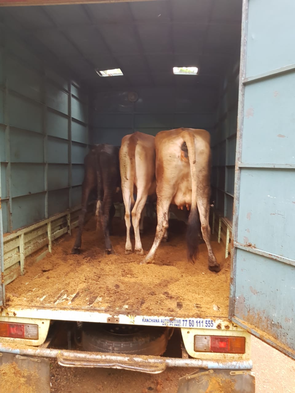 ಹಳದಿ ಮತ್ತು ನೀಲಿ ಬಣ್ಣದ ಐಸ್ ಕ್ರೀಂ ಬ್ರಾಂಡ್ ಒಂದರ ಹೆಸರು ಬರೆದಿರುವ ವಾಹನವನ್ನು ಪಿಎಸ್ ಐ ಯಲ್ಲಪ್ಪ ಎಸ್ ಮತ್ತು ಸಿಬ್ಬಂದಿ ಇಲಾಖಾ ಜೀಪಿನಲ್ಲಿ ರೌಂಡ್ಸ್ ಕರ್ತವ್ಯದಲ್ಲಿರುವ ಸಮಯ ಕೊಳ್ನಾಡು ಗ್ರಾಮದ ಸಾಲೆತ್ತೂರು ಜಂಕ್ಷನ್ ಬಳಿ ಇಂದು ಬೆಳಗ್ಗೆ ಗಮನಿಸಿ, ನಿಲ್ಲಿಸಲು ಸೂಚಿಸಿದಾಗ ಚಾಲಕನು ಒಮ್ಮೇಲೇ ವಾಹನವನ್ನು ಮುಂದಕ್ಕೆ ಚಲಾಯಿಸಿದ. ಕೊಳ್ನಾಡು ಗ್ರಾಮದ ಕಟ್ಟತ್ತಿಲ ಗೋಪಾಲಕೃಷ್ಣ ಮಠ ಎಂಬಲ್ಲಿ ವಾಹನವನ್ನು ನಿಲ್ಲಿಸಿದಾಗ, ಚಾಲಕ ಮತ್ತು ಇನ್ನೋರ್ವ ಪರಾರಿಯಾಗಿದ್ದು, ವಾಹನದ ಹಿಂಭಾಗದ ಬಾಗಿಲನ್ನು ತೆರೆದು ನೋಡಲಾಗಿ ಕಂದು ಬಣ್ಣದ ಎರಡು ಹಸುಗಳು ಮತ್ತು ಕಪ್ಪು ಬಣ್ಣದ ಗಂಡು ಕರುವನ್ನು ಹಿಂಸಾತ್ಮಕವಾಗಿ ಕಟ್ಟಿ ಹಾಕಿರುವುದು ಕಂಡು ಬಂದಿದೆ. ಆರೋಪಿಗಳು ಜಾನುವಾರುಗಳನ್ನು ಎಲ್ಲಿಂದಲೋ ಕಳವು ಮಾಡಿಕೊಂಡು ಬಂದು ಹಿಂಸಾತ್ಮಕ ರೀತಿಯಲ್ಲಿ ಕಟ್ಟಿಹಾಕಿ ವಧೆ ಮಾಡಿ ಮಾಂಸ ಮಾಡುವ ಸಲುವಾಗಿ ಐಸ್ ಕ್ರಿಂ ವಾಹನದಲ್ಲಿ ಕೇರಳ ಕಡೆಗೆ ಸಾಗಾಟ ಮಾಡುತ್ತಿರುವುದನ್ನು ಪತ್ತೆ ಹಚ್ಚಿ ಪ್ರಕರಣ ದಾಖಲಾಗಿದ್ದು ತನಿಖೆಯಲ್ಲಿದೆ ಎಂದು ಪೊಲೀಸರು ತಿಳಿಸಿದ್ದಾರೆ.