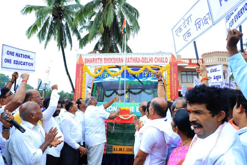 ಒಂದೇ ದೇಶ ಒಂದೇ ಶಿಕ್ಷಣ ಜಾರಿಗಾಗಿ ಭಾರತ ಶಿಕ್ಷಣ ಯಾತ್ರೆ, ದೆಹಲಿ ಚಲೋ ಆಂದೊಲನಕ್ಕೆ ಭಾನುವಾರ ಪೊಳಲಿಯ ಶ್ರೀ ರಾಜರಾಜೇಶ್ವರೀ ದೇವಿ ಕ್ಷೇತ್ರದಲ್ಲಿ ಅದ್ದೂರಿಯ ಚಾಲನೆ ಸಿಕ್ಕಿತು.