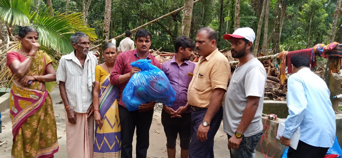 ಪಾತ್ರೆ, ದಿನಸಿ, ಚಹಾ ಹುಡಿ, ಸಕ್ಕರೆ, ಅಕ್ಕಿ, ಗೋಧಿ, ಔಷಧಿ, ಬ್ರಾಂಡ್ ನ್ಯೂ ಬಟ್ಟೆ, ಚಾಪೆ, ಬ್ಲ್ಯಾಂಕೆಟ್, ಬೆಡ್ ಶೀಟುಗಳನ್ನು ಹೊತ್ತು ಕಾಲ್ನಡಿಗೆಯಲ್ಲಿ ಸಾಗಿ, ಮನೆಮನೆ ಭೇಟಿಗೈದ ತಂಡ, ಅವುಗಳನ್ನು ವಿತರಿಸಿ ಮಾನವೀಯತೆ ಮೆರೆದರು.