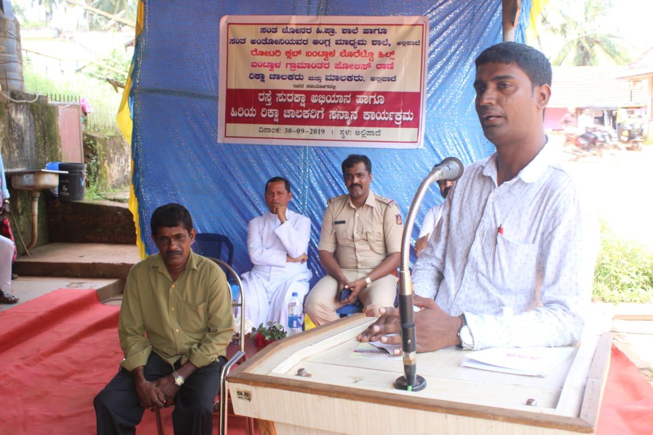 ಸಂತ ಜೋನರ ಹಿ.ಪ್ರಾ.ಶಾಲೆ ಹಾಗೂ ಸಂತ ಅಂತೋನಿಯವರ ಆಂಗ್ಲ ಮಾಧ್ಯಮ ಶಾಲೆ ಅಲ್ಲಿಪಾದೆ ಆಶ್ರಯದಲ್ಲಿ ರೋಟರಿ ಕ್ಲಬ್ ಬಂಟ್ವಾಳ ಲೊರೆಟ್ಟೊ ಹಿಲ್ಸ್, ಬಂಟ್ವಾಳ ಗ್ರಾಮಾಂತರ ಪೊಲೀಸ್ ಠಾಣೆ, ರಿಕ್ಷಾ ಚಾಲಕರು ಮತ್ತು ಮಾಲಕರು ಅಲ್ಲಿಪಾದೆ ಇವರ ಸಹಯೋಗದಲ್ಲಿ ಸೋಮವಾರ ನಡೆದ ರಸ್ತೆ ಸುರಕ್ಷ ಅಭಿಯಾನ ಹಾಗೂ ಹಿರಿಯ ರಿಕ್ಷಾ ಚಾಲಕರಿಗೆ ಸನ್ಮಾನ ಕಾರ್ಯಕ್ರಮದಲ್ಲಿ ಭಾಗವಹಿಸಿ ಅವರು ಮಾತನಾಡಿದರು. ಆಟೋ ಚಾಲಕರು ಪೊಲೀಸರ ಆಪ್ತರು. ಹೆಚ್ಚಾಗಿ ಪೊಲೀಸರಿಗೆ ಪ್ರಥಮ ಹಂತದ ಮಾಹಿತಿ ನೀಡುವವರು ಅವರೇ. ಅವರನ್ನು ಗೌರವದಿಂದ ಕಾಣಬೇಕು ಎಂದರು. ಆರಟಿಓ ಕಚೇರಿಗಳಲ್ಲಿ ಮಧ್ಯವರ್ತಿ ಗಳನ್ನು ಸಂಪರ್ಕಿಸದೇ ಸ್ವಯಂ ಕೆಲಸ ಮಾಡುವಂತೆ ಚಾಲಕರಿಗೆ ಅವರು ಸಲಹೆ ನೀಡಿದರು.