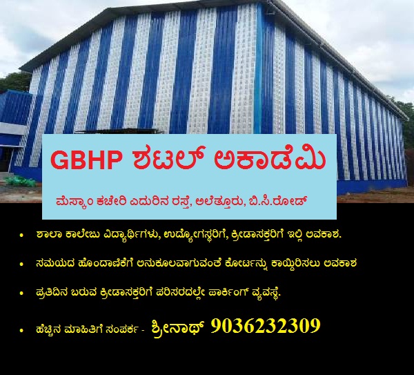 ಬಂಟ್ವಾಳ ತಾಲೂಕಿನ ಹೃದಯಭಾಗ ಬಿ.ಸಿ.ರೋಡಿನ ಕೈಕುಂಜೆ ರಸ್ತೆಯ ಮೆಸ್ಕಾಂ ಎದುರಿನಿಂದ ಅಲೆತ್ತೂರು ರಸ್ತೆಯಲ್ಲಿ ಅರ್ಧ ಕಿ.ಮೀ. ದೂರದಲ್ಲಿ ವಿಶಾಲವಾದ ಜಾಗದಲ್ಲಿ ಆರಂಭಗೊಂಡ ಶಟಲ್ ಒಳಾಂಗಣ ಕ್ರೀಡಾಂಗಣ ಜಿ.ಬಿ.ಎಚ್.ಪಿ. ಶಟಲ್ ಅಕಾಡೆಮಿಯನ್ನು ಬಂಟ್ವಾಳ ಶಾಸಕ ರಾಜೇಶ್ ಯು.ನಾಯ್ಕ್ ಶಟಲ್ ಬ್ಯಾಡ್ಮಿಂಟನ್ ಆಡುವ ಮೂಲಕ ಭಾನುವಾರ ಸಂಜೆ ಉದ್ಘಾಟಿಸಿದರು.
