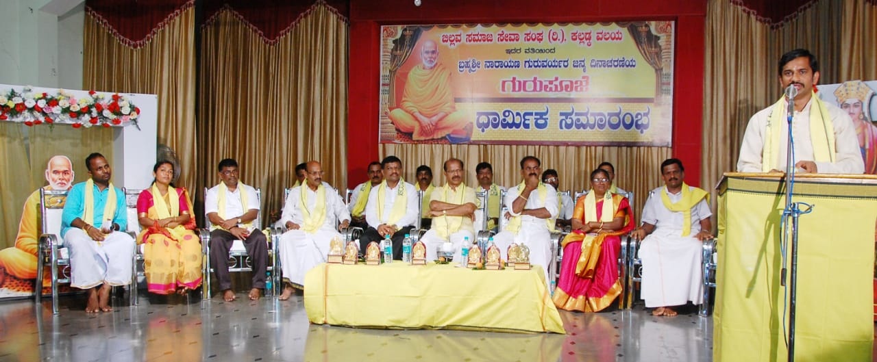 ಕಲ್ಲಡ್ಕದ ಬಿಲ್ಲವ ಸಮಾಜ ಸೇವಾ ಸಂಘ ಆಶ್ರಯದಲ್ಲಿ ಕಲ್ಲಡ್ಕದ ಪದ್ಮಾವತಿ ಕಲ್ಯಾಣ ಮಂಟಪದಲ್ಲಿ ನಡೆದ ಬ್ರಹ್ಮಶ್ರೀ ನಾರಾಯಣಗುರುವರ್ಯರ ಜನ್ಮದಿನಾಚರಣೆ ಪ್ರಯುಕ್ತ ಗುರುಪೂಜೆ ಸಮಾರಂಭದಲ್ಲಿ ಅವರು ಮಾತನಾಡಿದರು.