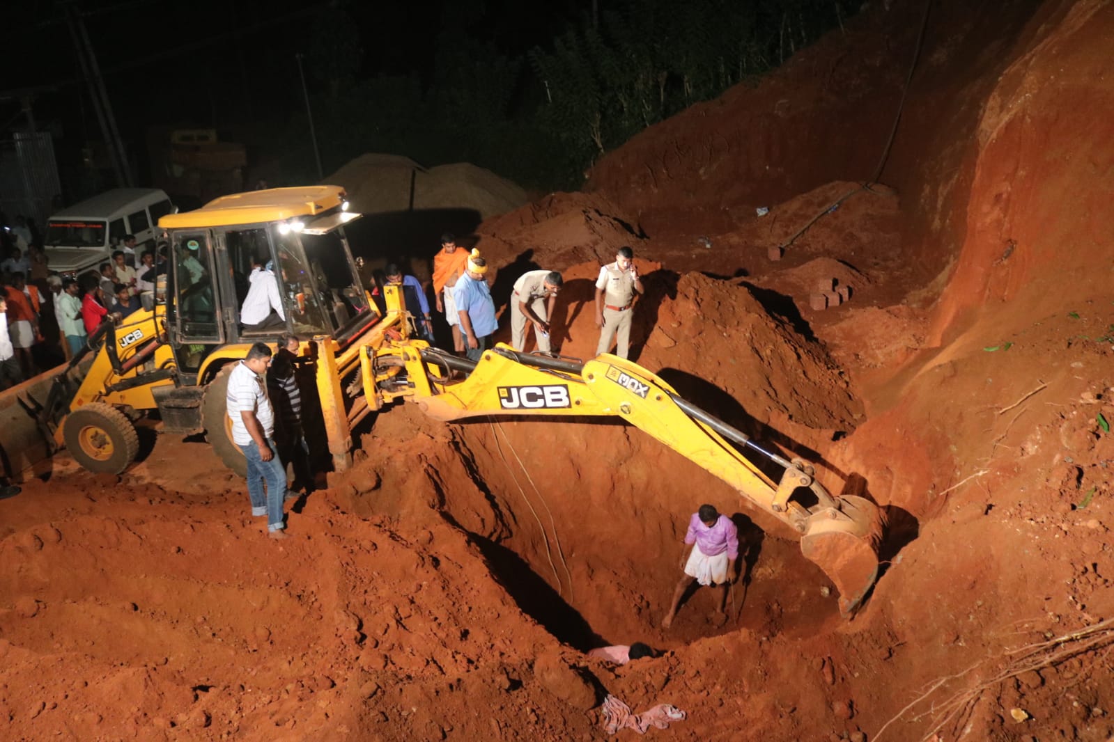 ಬಂಟ್ವಾಳ ತಾಲೂಕಿನ ಕರೋಪಾಡಿ ಗ್ರಾಮದ ಒಡಿಯೂರಿನಲ್ಲಿ ಶನಿವಾರ ಸಂಜೆ ನಡೆದ ದುರ್ಘಟನೆಯಲ್ಲಿ ಕಟ್ಟಡ ನಿರ್ಮಾಣಕ್ಕೆ ಪಿಲ್ಲರ್ ಗುಂಡಿ ತೆಗೆಯುತ್ತಿದ್ದ ವೇಳೆ ಗುಡ್ಡ ಕುಸಿದು ಮೂವರು ಕಾರ್ಮಿಕರು ಮೃತಪಟ್ಟು ಓರ್ವ ಗಾಯಗೊಂಡಿದ್ದಾರೆ.