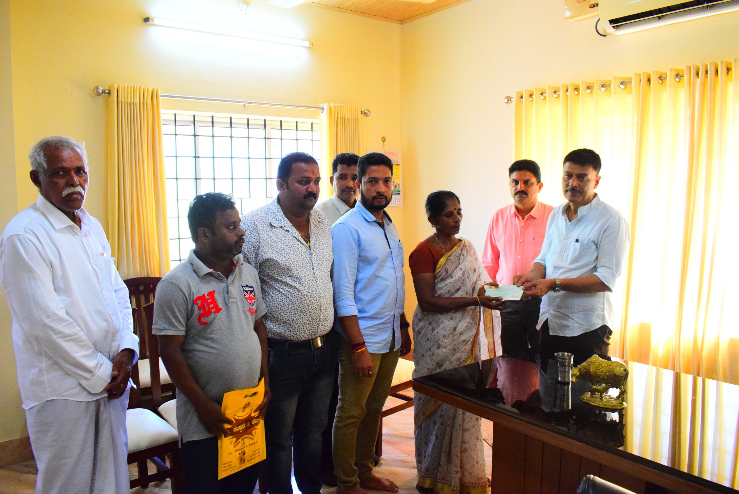ಈ ಹಿನ್ನೆಲೆಯಲ್ಲಿ ಅವಘಡದಲ್ಲಿ ಮೃತಪಟ್ಟ ವಿಟ್ಲಪಡ್ನೂರು ಗ್ರಾಮದ ಕಾಪುಮಜಲು ನಿವಾಸಿಯಾದ ರಮೇಶ್ ಮಡಿವಾಳ ಎಂಬವರ ಪತ್ನಿ ಮೋಹಿನಿಯವರಿಗೆ ಬಂಟ್ವಾಳ ಶಾಸಕರಾದ ರಾಜೇಶ್ ನಾಯ್ಕ್ ಉಳಿಪ್ಪಾಡಿಯವರು ರೂ. ೩ ಲಕ್ಷದ ಪರಿಹಾರದ ಚೆಕ್ನ್ನು ಶಾಸಕರ ಕಚೇರಿಯಲ್ಲಿ ಹಸ್ತಾಂತರಿಸಿದರು. ಗಾಯಾಳುಗೆ ರೂ.೧ ಲಕ್ಷ ಚೆಕ್ನ್ನು ಹಸ್ತಾಂತರಿಸಲಾಯಿತು. ಈ ಸಂಧರ್ಭದಲ್ಲಿ ವಿಟ್ಲಪಡ್ನೂರು ಪಂ.ಅಧ್ಯಕ್ಷ ರವೀಶ್ ಶೆಟ್ಟಿ, ಸದಸ್ಯರಾದ ನಾಗೇಶ್ ಶೆಟ್ಟಿ, ಅಭಿಷೇಕ್ ರೈ, ಕಂದಯ ನಿರೀಕ್ಷಕರಾದ ದಿವಾಕರ್, ವಿಶ್ವನಾಥ ಉಪಸ್ಥಿತರಿದ್ದರು.