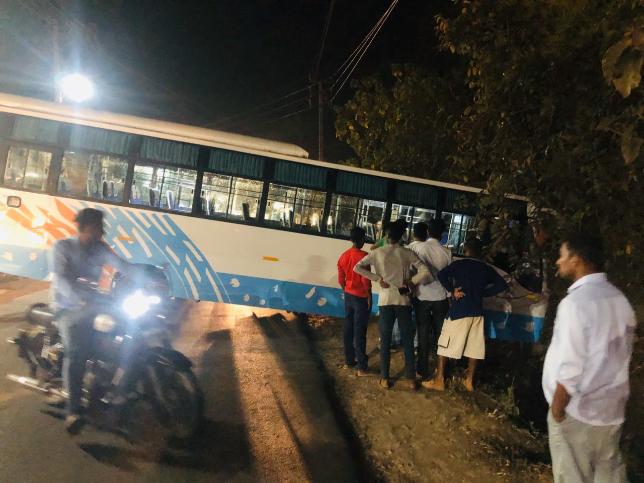 ನಿಲ್ಲಿಸಿ ತೊಳೆಯುತ್ತಿದ್ದ ಸಂದರ್ಭ ಬಸ್ ತಾಂತ್ರಿಕ ಸಮಸ್ಯೆಯಿಂದ ದಿಢೀರನೆ ಚಲಿಸಿ ಚರಂಡಿಗೆ ವಾಲಿ ನಿಂತ ಘಟನೆ ವಿಟ್ಲದ ಬಾಕಿಬಾರ್ ಪೆಟ್ರೋಲ್ ಪಂಪ್ ನಲ್ಲಿ ಶನಿವಾರ ರಾತ್ರಿ ನಡೆಯಿತು. ಯಾರಿಗೂ ಯಾವುದೇ ಅಪಾಯ ಸಂಭವಿಸಿಲ್ಲ.