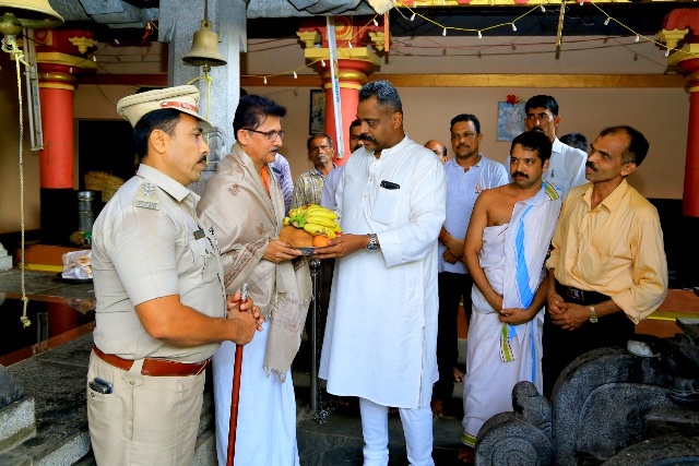 ಬೆಂಗಳೂರಿನ ರೈಲ್ವೆ ಎಡಿಜಿಪಿ ಯಾಗಿ ಮುಂಬಡ್ತಿ ಹೊಂದಿ ವರ್ಗಾವಣೆಗೊಂಡಿರುವ ಮಂಗಳೂರು ಐ.ಜಿ.ಪಿ.ಅರುಣ್ ಚಕ್ರವರ್ತಿ ಇತಿಹಾಸ ಪ್ರಸಿದ್ಧ ನಂದಾವರ ಶ್ರೀವಿನಾಯಕ ಶಂಕರನಾರಾಯಣ ದುರ್ಗಾಂಭಾ ಕ್ಷೇತ್ರಕ್ಕೆ ಮಂಗಳವಾರ ಬೇಟಿ ನೀಡಿ ವಿಶೇಷ ಪ್ರಾರ್ಥನೆ ಸಲ್ಲಿಸಿದರು. ಈ ಸಂದರ್ಭ ಮೂರು ವರ್ಷಗಳ ಹಿಂದೆ ನೇತ್ರಾವತಿಯಲ್ಲಿ ಸ್ನಾನಕ್ಕಿಳಿದ ಸಂದರ್ಭ ಕೊಚ್ಚಿ ಹೋಗುತ್ತಿದ್ದ ಇಬ್ಬರನ್ನು ರಕ್ಷಿಸಿದ ಅರ್ಚಕ ಪ್ರಕಾಶ ಮರಾಠೆ ಅವರನ್ನು ಶ್ಲಾಘಿಸಿದ ಚಕ್ರವರ್ತಿ, ಅವರನ್ನು ಗೌರವಿಸಿದರು.