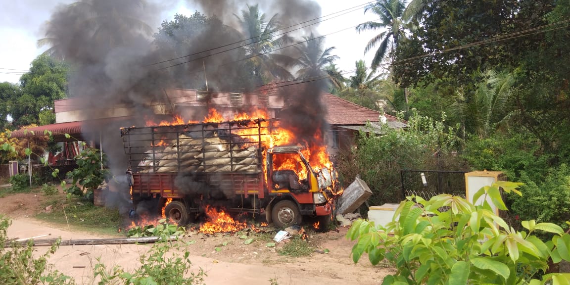 ಕ್ಯಾಟಲ್ ಫೀಡ್ ಸಾಗಿಸುತ್ತಿದ್ದ ಲಾರಿ ಬ್ರೇಕ್ ವೈಫಲ್ಯದಿಂದ ಚಾಲಕನ ನಿಯಂತ್ರಣ ತಪ್ಪಿ ವಿದ್ಯುತ್ ಕಂಬಕ್ಕೆ ಡಿಕ್ಕಿಯಾಗಿ ಸಂಪೂರ್ಣ ಸುಟ್ಟು ಹೋದ ಘಟನೆ ಸಜೀಪಮುನ್ನೂರು ಗ್ರಾಮ ಪಂಚಾಯಿತಿ ವ್ಯಾಪ್ತಿಯ ಮಾರ್ನಬೈಲಿನಲ್ಲಿ ನಡೆದಿದೆ.