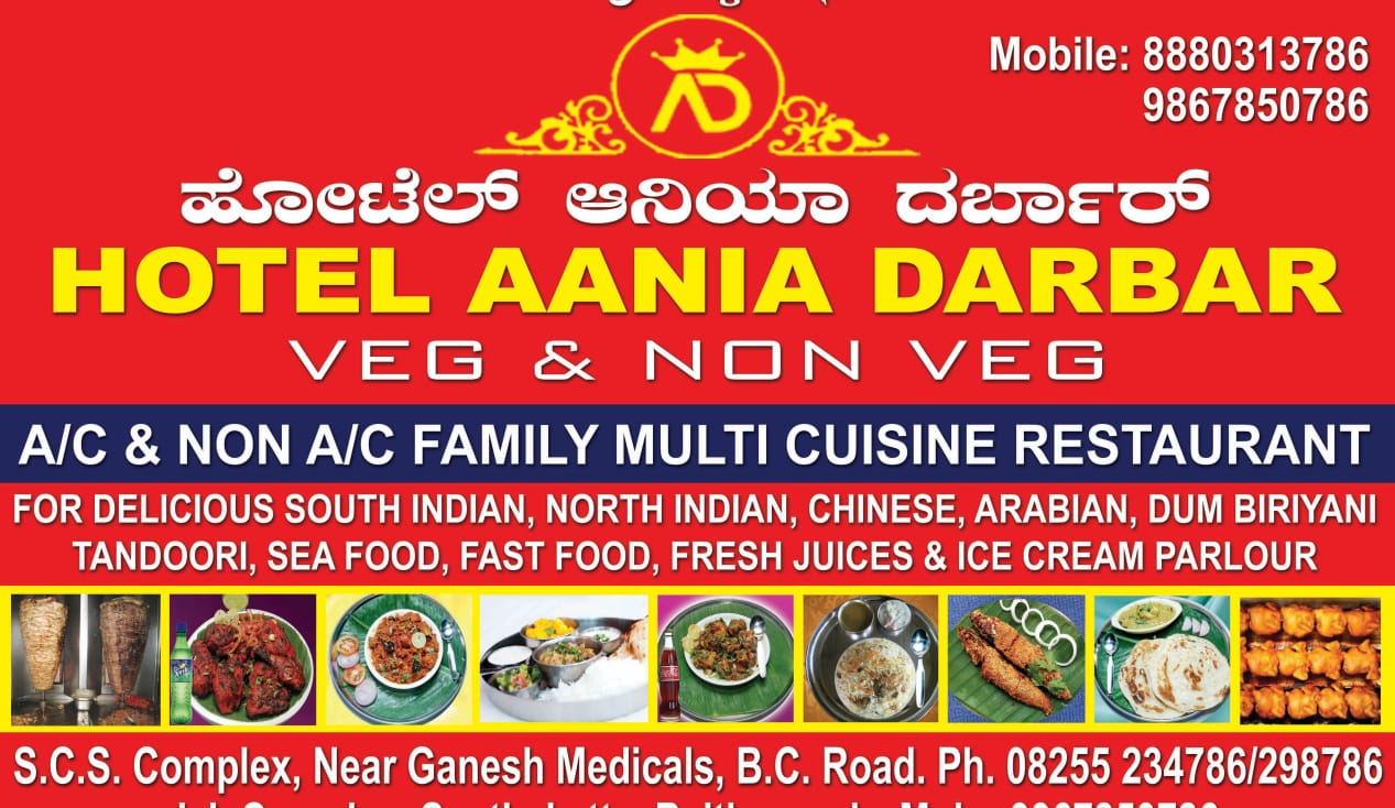 ಬಿ.ಸಿ.ರೋಡಿನ ಹೃದಯ ಭಾಗದಲ್ಲಿರುವ ಆನಿಯಾ ದರ್ಬಾರ್ ಫ್ಯಾಮಿಲಿ ರೆಸ್ಟೋರೆಂಟ್ ತನ್ನ ವಿಶಿಷ್ಟ ಶೈಲಿಯ ಶುಚಿ ರುಚಿಯಾದ ಅರಬಿಯನ್, ಸೌತ್ ಇಂಡಿಯನ್, ನಾರ್ತ್ ಇಂಡಿಯನ್ ಹಾಗೂ ಚೈನೀಸ್ ತಿಂಡಿ ತಿನಿಸುಗಳಿಂದ ಈಗಾಗಲೇ ಎಲ್ಲರ ಮನೆಮಾತಾಗಿದೆ.