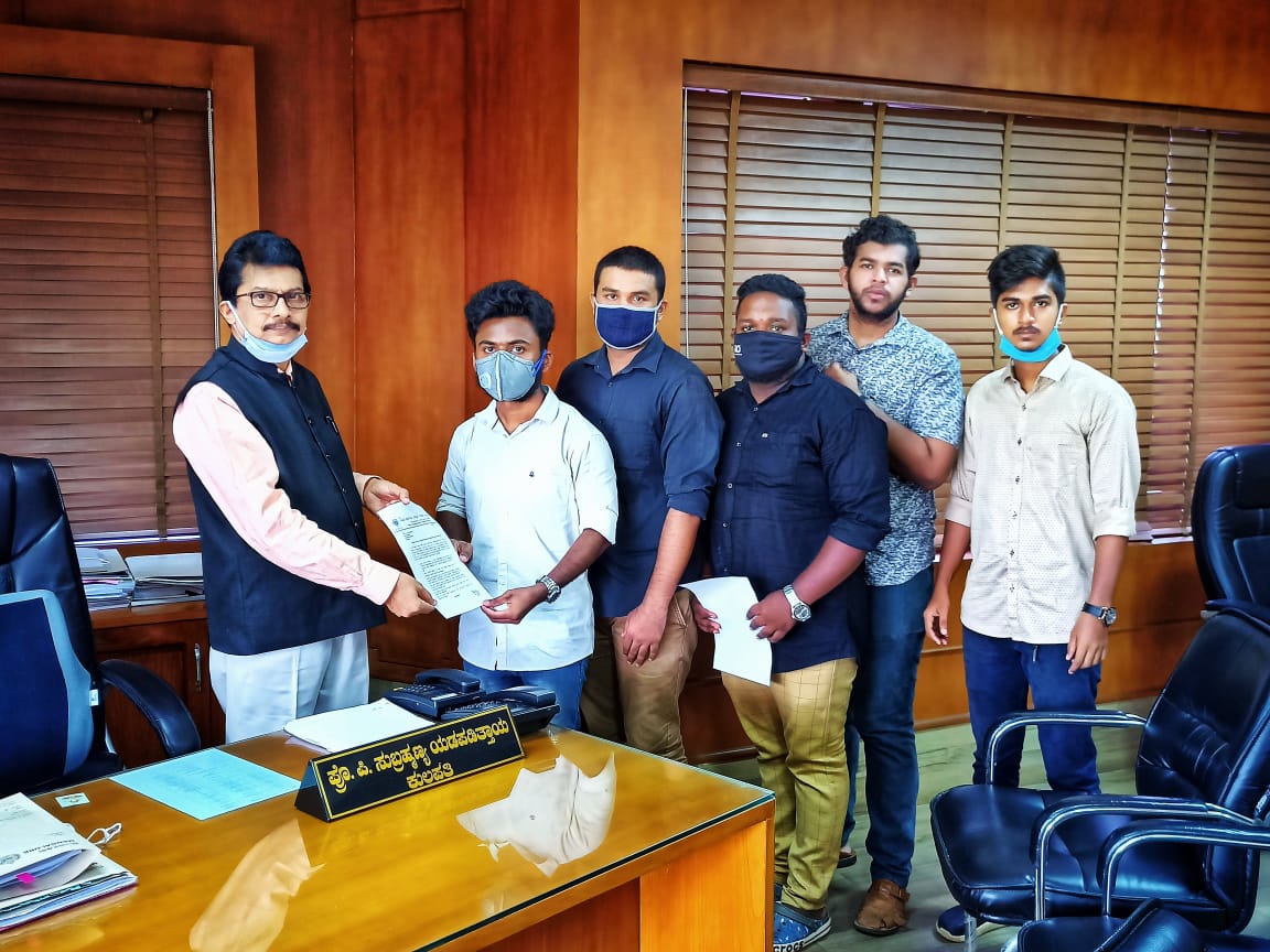 ಸಾಮಾಜಿಕ ಅಂತರ ಕಾಯ್ದುಕೊಳ್ಳುವಿಕೆ, ಸೆಮಿಸ್ಡರ್ ಪರೀಕ್ಷೆ ನಡೆಸುವ ಕುರಿತು ಯೋಜನೆಗಳನ್ನು ರೂಪಿಸಿ ತಮ್ಮ ಕಾರ್ಯ ವ್ಯಾಪ್ತಿಯಲ್ಲಿ ಬರುವ ಎಲ್ಲಾ ಕಾಲೇಜುಗಳಿಗೆ ಸೂಕ್ತ ನಿರ್ದೇಶನ ನೀಡಬೇಕು. ಅಂತಿಮ ವರ್ಷದ ವಿದ್ಯಾರ್ಥಿಗಳಿಗೆ ಆದಷ್ಟು ಬೇಗ ಪರೀಕ್ಷೆಗಳನ್ನು ನಡೆಸಿ ಸರಿಯಾದ ಫಲಿತಾಂಶ ನೀಡಬೇಕು ಹಾಗೂ ಮಂಗಳೂರು ವಿವಿ ವ್ಯಾಪ್ತಿಯಲ್ಲಿ ಬರುವ ಯಾವುದೇ ಕಾಲೇಜುಗಳು ಮುಂದಿನ ಶೈಕ್ಷಣಿಕ ವರ್ಷದ ಶುಲ್ಕವನ್ನು ಹೆಚ್ಚಿಸದಂತೆ ಆದೇಶ ಹೊರಡಿಸ ಬೇಕು ಎಂದು ಅ.ಭಾ.ವಿ.ಪ. ನಿಯೋಗವು ಕುಲಪತಿ ಹಾಗೂ ಕುಲ ಸಚಿವರಿಗೆ ಮನವಿಯನ್ನು ಸಲ್ಲಿಸಿ, ಚರ್ಚಿಸಿದರು.