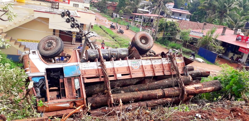 ಮೇಲ್ಕಾರ್ ಸಮೀಪ ಮಾರ್ನಬೈಲ್ ಎಂಬಲ್ಲಿ ಶುಕ್ರವಾರ ಬೆಳಗ್ಗೆ ಮರದ ದಿಮ್ಮಿಗಳನ್ನು ಹೇರಿಕೊಂಡು ಬರುತ್ತಿದ್ದ ಲಾರಿ ವಿದ್ಯುತ್ ಕಂಬಕ್ಕೆ ಡಿಕ್ಕಿಯಾಗಿ ಉರುಳಿಬಿತ್ತು. ಯಾರಿಗೂ ಪ್ರಾಣಾಪಾಯ ಉಂಟಾಗಿಲ್ಲ. ಘಟನೆಯಲ್ಲಿ ಲಾರಿ ಸಂಪೂರ್ಣ ಜಖಂಗೊಂಡಿದ್ದು, ಮೂರು ವಿದ್ಯುತ್ ಕಂಬಗಳು ಧರೆಗುರುಳಿದವು. ಬೆಳಗ್ಗೆ ಘಟನೆ ಸಂಭವಿಸಿದ್ದು, ಟ್ರಾಫಿಕ್ ಎಸ್.ಐ. ರಾಜೇಶ್ ಮತ್ತು ಸಿಬ್ಬಂದಿ ಸ್ಥಳ ಪರಿಶೀಲನೆ ನಡೆಸಿದರು.