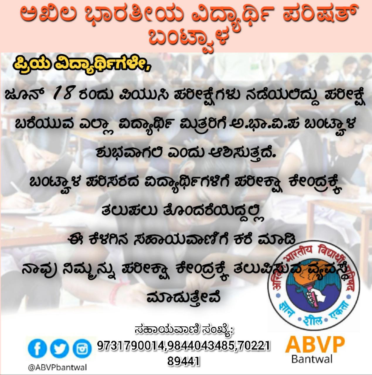 Be the first to comment on "ಪಿಯುಸಿ ಬಂಟ್ವಾಳ ಪರಿಸರದ ಪರೀಕ್ಷಾರ್ಥಿಗಳಿಗೆ ಎಬಿವಿಪಿ ಸಹಾಯವಾಣಿ"