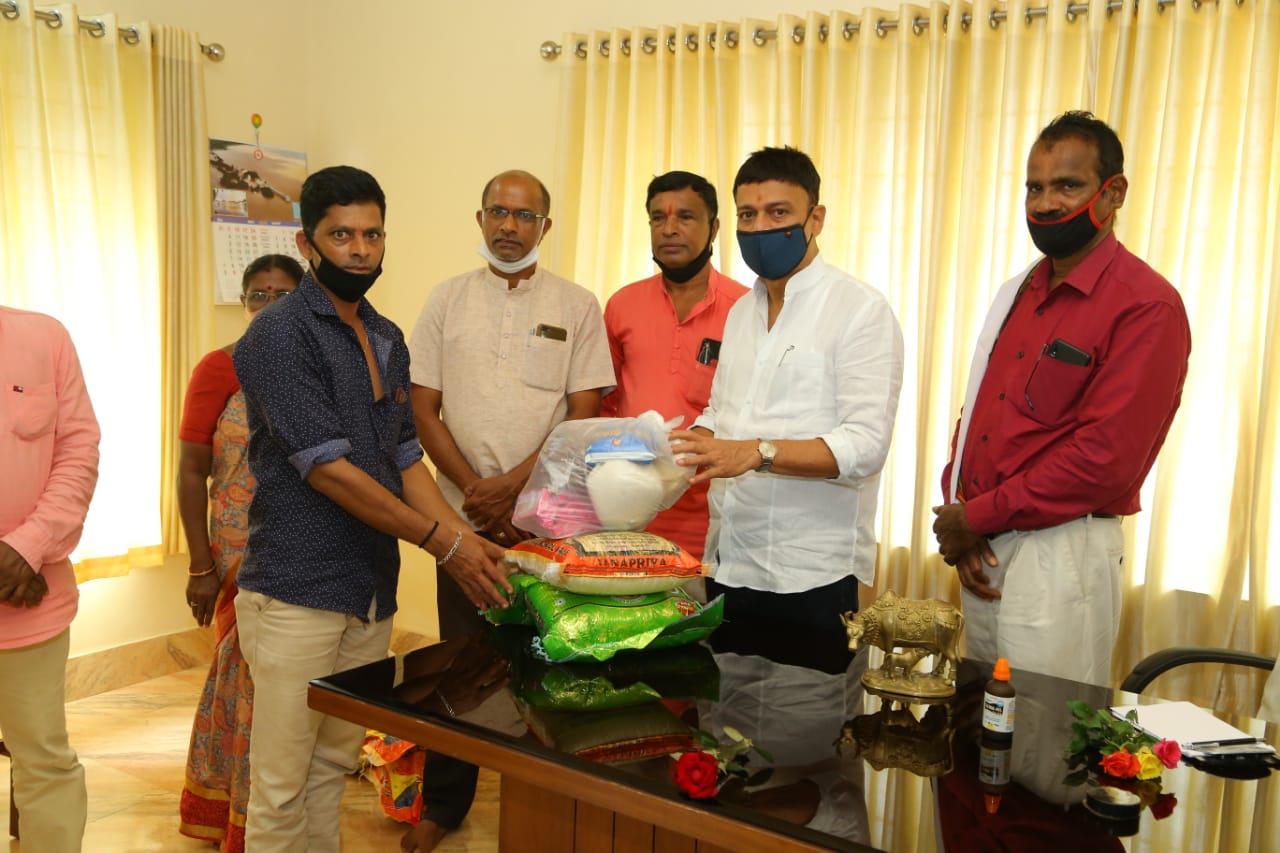 ಲಾಕ್ ಡೌನ್ ನಿಂದ ಸಂಕಷ್ಟದ ಪರಿಸ್ಥಿತಿಯಲ್ಲಿ ಜೀವನ ಮಾಡುವ ಯಕ್ಷಗಾನ ಕಲಾವಿದರಿಗೆ ಶನಿವಾರ ಬಂಟ್ವಾಳ ಶಾಸಕ ರಾಜೇಶ್ ನಾಯ್ಕ್ ಉಳಿಪ್ಪಾಡಿಗುತ್ತು ಅವರು ಕಚೇರಿಯಲ್ಲಿ ಕಿಟ್ ವಿತರಿಸಿದರು.