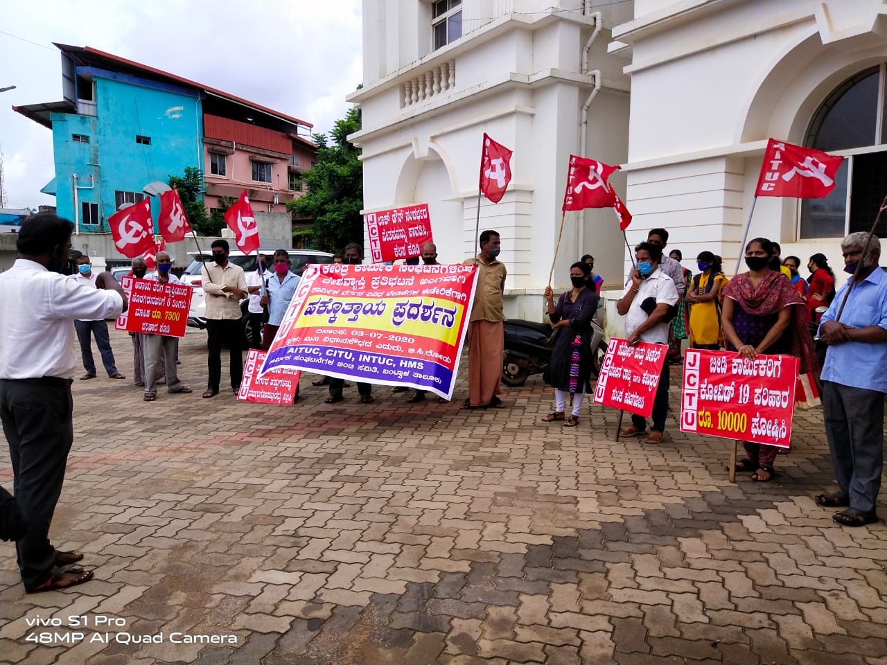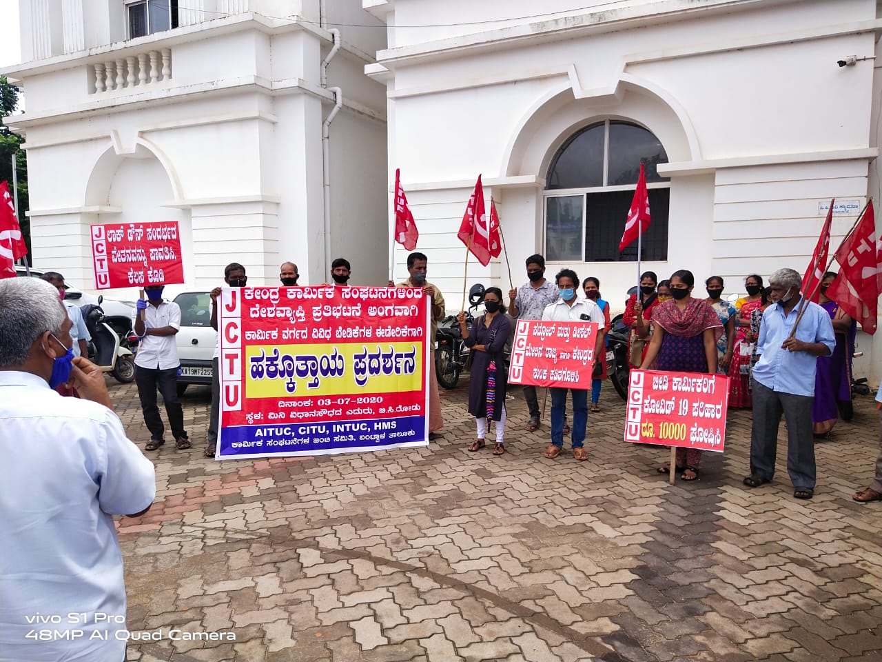 ಬಂಟ್ವಾಳ: ಲಾಕ್ ಡೌನ್ ಸಂದರ್ಭ ಕಾರ್ಮಿಕರಿಗೆ ಸಂಬಳ ಸಿಗದೆ ಕುಟುಂಬ ಉಪವಾಸ ಬಿದ್ದಿದ್ದು. ಸರ್ಕಾರದ ಪರಿಹಾರ ನಿರ್ದಿಷ್ಟ ಫಲಾನುಭವಿಗಳಿಗೆ ದೊರಕಿಲ್ಲ ಎಂದು ಕೇಂದ್ರ ಕಾರ್ಮಿಕ ಸಂಘಟನೆಗಳ ಜಂಟಿ ವೇದಿಕೆ ನೇತೃತ್ವದಲ್ಲಿ ಜೆಸಿಟಿಯು ಬಂಟ್ವಾಳ ತಾಲೂಕು ಸಮಿತಿ ಆಶ್ರಯದಲ್ಲಿ ಹಕ್ಕೊತ್ತಾಯ ಪ್ರದರ್ಶನ ಬಿ.ಸಿ.ರೋಡ್ ಮಿನಿ ವಿಧಾನಸೌಧದ ಎದುರು ನಡೆಯಿತು.