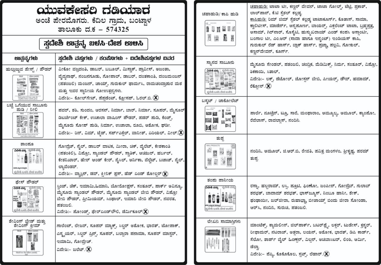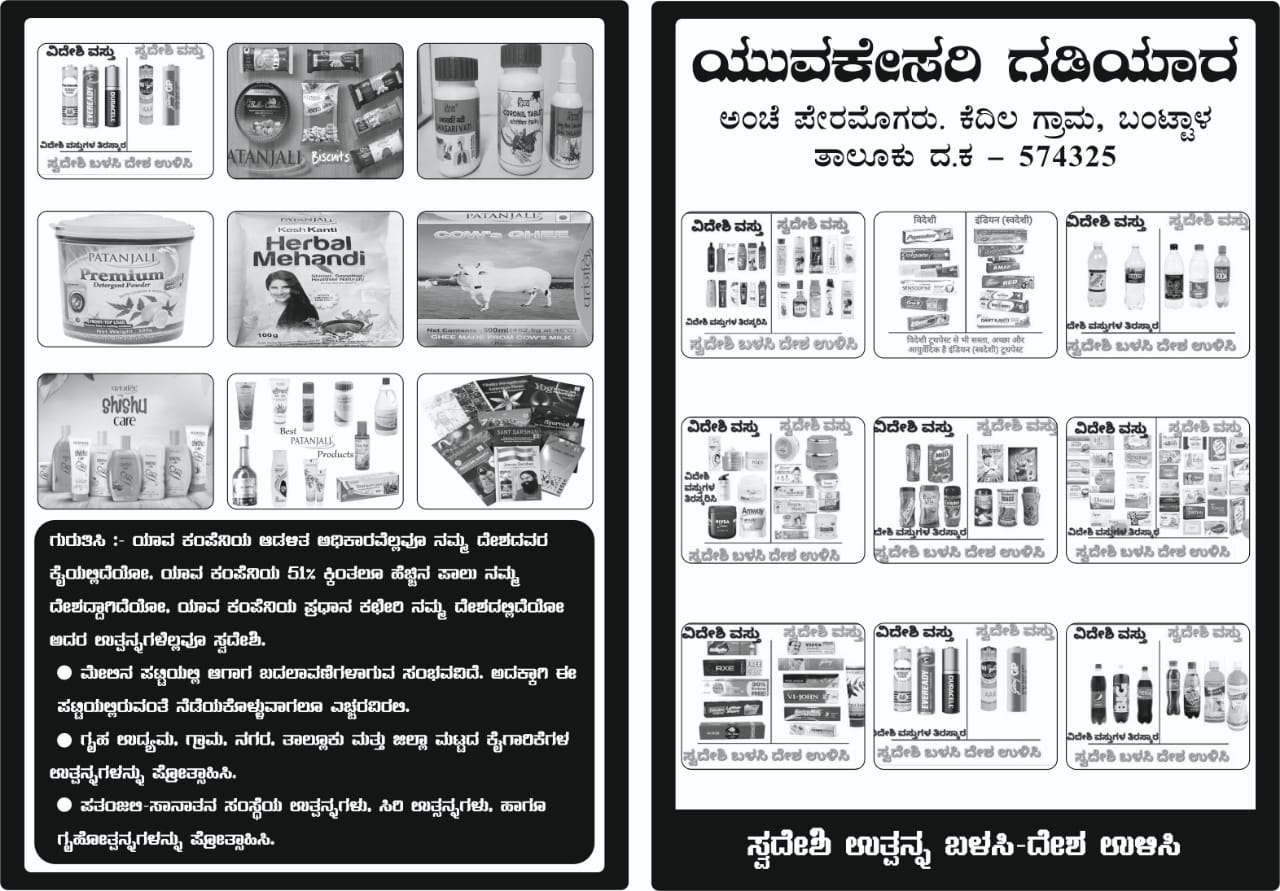ಬಂಟ್ವಾಳ ತಾಲೂಕಿನ ಕೆದಿಲ ಗ್ರಾಮದ ಯುವಕೇಸರಿ ಗಡಿಯಾರ ಸಂಘಟನೆಯ ಯುವಕರು ಬನ್ನಿ ವಿಕೃತಿಯಿಂದ ಸಂಸ್ಕೃತಿಯ ಕಡೆಗೆ ಎನ್ನುವ ಘೋಷವಾಕ್ಯ ದೊಂದಿಗೆ ಮುನ್ನಡೆಯುತ್ತಿದ್ದು, ಇದೀಗ ಸ್ವದೇಶಿ ವಸ್ತುಗಳ ಪಟ್ಟಿಯನ್ನು ಹೊರಡಿಸಿದೆ. ಇತ್ತೀಚೆಗಷ್ಟೆ ಚೀನಾ ದೇಶವು ನಮ್ಮ 21 ಸೈನಿಕರನ್ನು ಬಲಿ ತೆಗೆದುಕೊಂಡಿತು. ಅದರ ವಿರುದ್ದವಾಗಿ ಇಡೀ ಭಾರತವೇ ಚೀನಿ ವಸ್ತುಗಳನ್ನು ಬಹಿಷ್ಕರಿಸುವುದರ ಮೂಲಕ ದುಷ್ಟ ಚೀನಾಕ್ಕೆ ಪಾಟ ಕಲಿಸುತ್ತಿದೆ. ಹಲ್ಲುಜ್ಜುವ ಬ್ರೆಶ್, ಪೇಸ್ಟ್, ಸೋಪು,ಸೋಪು ಹುಡಿ,ಶಾಂಪು,ರೇಸರ್,ಹೀಗೆ ವಿದೇಶಿ ವಸ್ತುಗಳು ನಮ್ಮ ಮನೆ ಸೇರದಂತೆ ಜಾಗೃತಿಗೊಳಿಸುವ ಪ್ರಯತ್ನವಾಗಿದಿನೋಪಯೋಗಿ ಸ್ವದೇಶಿ ವಸ್ತುಗಳ ಪಟ್ಟಿಯನ್ನು ಯುವಕೇಸರಿ ಗಡಿಯಾರ ಸಂಘಟನೆಯು ಹೊರಡಿಸಿದೆ. ಈ ಸ್ವದೇಶಿ ವಸ್ತುಗಳ ಪಟ್ಟಿಯನ್ನು ಶನಿವಾರ ದೇಂತಡ್ಕ ವನದುರ್ಗಾದೇವಿಯ ಸನ್ನಿಧಿಯಲ್ಲಿ ಗಣ್ಯರ ಸಮಕ್ಷಮ ಸಾಂಕೇತಿಕವಾಗಿ ಬಿಡುಗಡೆಗೊಳಿಸಲಾಯಿತು ಎಂದು ಕೆದಿಲ ಗಣರಾಜ ಭಟ್ ತಿಳಿಸಿದ್ದಾರೆ.
