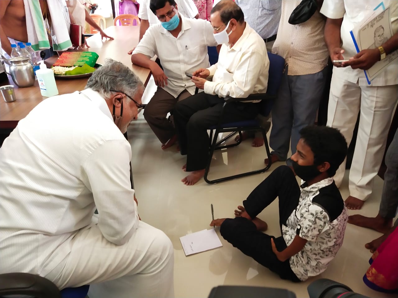ಬಂಟ್ವಾಳ ಎಸ್.ವಿ.ಎಸ್. ಪ್ರೌಢಶಾಲೆಯ ಕನ್ನಡ ಮಾಧ್ಯಮ ವಿಭಾಗದಲ್ಲಿ ಹತ್ತನೇ ತರಗತಿಯನ್ನು ಕಲಿಯುತ್ತಿರುವ ಈ ಬಾಲಕನ ಹೆಸರು ಕೌಶಿಕ್. ತಂದೆ ರಾಜೇಶ್ ಆಚಾರ್ಯ, ತಾಯಿ ಜಲಜಾಕ್ಷಿ ಆಚಾರ್ಯ. ಮನೆ ಬಂಟ್ವಾಳ ಬಸ್ತಿಪಡ್ಪುವಿನ ಕಂಚಿಗಾರಪೇಟೆ. ಎಸ್.ಎಸ್.ಎಲ್.ಸಿ. ಪರೀಕ್ಷೆಗೆ ಸಾಮಾನ್ಯವಾಗಿ ಅಂಗವೈಕಲ್ಯದ ಮಕ್ಕಳಿಗೆ ಸಹಾಯಕನನ್ನು ಇಟ್ಟುಕೊಳ್ಳುವ ಅವಕಾಶ ಇರುತ್ತದೆ. ಆದರೆ ಕೌಶಿಕ್ ಎಲ್ಲವನ್ನೂ ನಿರಾಕರಿಸಿದ. ನಿನ್ನೆ ಪರೀಕ್ಷೆಯನ್ನು ನಿಗದಿತ ಸಮಯದೊಳಗೆ ಸುಲಲಿತವಾಗಿ ಬರೆದ. ಇದು ಶಿಕ್ಷಣ ಸಚಿವ ಸುರೇಶ್ ಕುಮಾರ್ ಅವರ ಗಮನ ಸೆಳೆದಿತ್ತು. ಶುಕ್ರವಾರ ಬಂಟ್ವಾಳ ತಾಲೂಕಿಗೆ ಭೇಟಿ ನೀಡಿದ ವೇಳೆ ಪೊಳಲಿಯಲ್ಲಿ ಕೌಶಿಕ್ ನನ್ನು ಭೇಟಿಯಾದ ಸಚಿವರು, ಈ ವೇಳೆ ಕಾಲಿನಲ್ಲಿ ಎಸ್ಎಸ್ಎಲ್ ಸಿ ಪರೀಕ್ಷೆ ಬರೆದಿದ್ದ ಕೌಶಿಕ್ ನನ್ನು ದೇವಸ್ಥಾನದ ಪ್ರವೇಶ ದ್ವಾರದ ಬಳಿ ಭೇಟಿ ಆತನ ಜತೆ ಉಭಯ ಕುಶಲೋಪರಿ ವಿಚಾರಿಸಿದರು. ನೀನೇ ನಮಗೆ ಸ್ಪೂರ್ತಿ ಎಂದು ಆತನ ಪಠ್ಯೇತರ ಚಟುವಟಿಕೆಗಳ ಕುರಿತು ಮೆಚ್ಚುಗೆ ವ್ಯಕ್ತಪಡಿಸಿ ಯಾವ ಪರೀಕ್ಷೆ ಹೇಗಿತ್ತು ಎಂಬ ಮಾಹಿತಿ ಕೇಳಿದರು. ನಿನ್ನ ಸಾಧನೆಯ ಕುರಿತು ಅದೇ ದಿನ ಸಾಮಾಜಿಕ ಜಾಲತಾಣಗಳಲ್ಲಿ ಬರೆದುಕೊಂಡಿದ್ದೆ ಎಂದರು. ಬಳಿಕ ತಮ್ಮ ಆಪ್ತ ಸಹಾಯಕನನ್ನು ಕರೆದು ಪೋಟೊ ತೆಗೆಸಿಕೊಂಡರು.