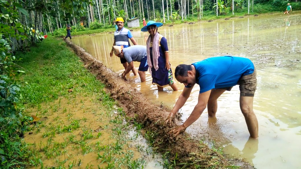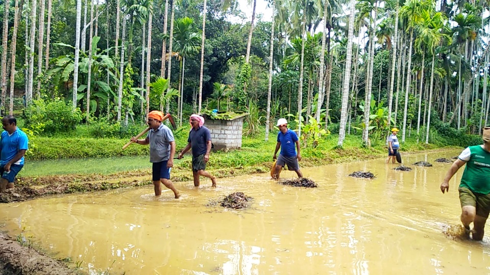ಇದು ಪುತ್ತೂರಿನ ಸಂಪ್ಯದಲ್ಲಿರುವ ಪ್ರದೇಶ. ಹಲವಾರು ವರ್ಷಗಳಿಂದ ಅಲ್ಲಿ ಖಾಲಿ ಬಿದ್ದಿರುವ ಗದ್ದೆ ಜಾಗ. ಗಿಡಗಂಟಿಗಳೊಂದಿಗೆ ಸಮೃದ್ಧವಾಗಿದ್ದ ಹಡೀಲು ಭೂಮಿಯನ್ನು ಸಮತಟ್ಟುಗೊಳಿಸಿ, ನೇಜಿ ನೆಡಲು ಅಣಿಯಾಗಿಸುವ ಕಾರ್ಯವನ್ನು ಇಂದು ಪುತ್ತೂರು ರೋಟರಿ ಸೆಂಟ್ರಲ್ ತಂಡ ನಡೆಸಿತು. ಸದಾ ಕಚೇರಿ ಜಂಜಡಗಳಲ್ಲಿ ಮುಳುಗಿರುವ ಸದಸ್ಯರು ಗದ್ದೆಗಿಳಿದು ಸುರಿಯುವ ಮಳೆಯನ್ನು ಲೆಕ್ಕಿಸದೆ ಹಾರೆ ಹಿಡಿದರು. ಇವರಲ್ಲಿ ಬಂಟ್ವಾಳ ಭೂಮಿ ಶಾಖೆಯ ಉಪತಹಸೀಲ್ದಾರ್ ಶ್ರೀಧರ್ ಅವರೂ ಲವಲವಿಕೆಯಿಂದ ತೊಡಗಿಸಿಕೊಂಡರು. ಲೇಖನಿ ಹಿಡಿದು, ಫೈಲುಗಳ ನಡುವೆ ಮುಳುಗಿರುವ ಶ್ರೀಧರ್, ಇಂದು ಹಾರೆ ಹಿಡಿದು ಗದ್ದೆಯಲ್ಲಿರುವ ಕಳೆ ಕೀಳುವ ಕಾರ್ಯವನ್ನು ಇತರ ರೋಟರಿ ಸದಸ್ಯರೊಂದಿಗೆ ನಡೆಸಿದರು.ಬೆಳಗಿನಿಂದ ಸಂಜೆವರೆಗಿನ ಅವಧಿಯನ್ನು ಗದ್ದೆಯಲ್ಲಿ ಕಳೆದ ಶ್ರೀಧರ್ ಮತ್ತು ಇತರ ರೋಟರಿ ಸದಸ್ಯರು ಮಾದರಿ ಕಾರ್ಯವನ್ನು ನಡೆಸಿದರು. ಹಾಡುಗಾರರು, ಯಕ್ಷಗಾನ ವೇಷಧಾರಿಗಳೂ ಆಗಿರುವ ಶ್ರೀಧರ್ ಅವರಿಗೆ ಕೃಷಿ ಕಾರ್ಯದ ಕುರಿತು ಆಸಕ್ತಿ. ಸಂಪ್ಯದಲ್ಲಿ 20 ವರ್ಷಗಳಿಂದ ಹಡೀಲು ಬಿದ್ದ ಗದ್ದೆ ಇದು. ಟ್ರಾಕ್ಟರ್ ತೆಗೆದುಕೊಂಡು ಹೋಗಿ. ಗದ್ದೆಯನ್ನು ಸಮತಟ್ಟುಗೊಳಿಸಿ ಗೊಬ್ಬರ ಹಾಕಿ, ನೇಜಿ ನೆಡಲು ತಯಾರು ಮಾಡಿದ್ದೇವೆ. ನಾವೆಲ್ಲಾ ಪುತ್ತೂರು ರೋಟರಿ ಸೆಂಟ್ರಲ್ ತಂಡದ ಸದಸ್ಯರು ಒಟ್ಟಾಗಿ ಇದನ್ನು ನಡೆಸಿದ್ದೇವೆ ಎಂದು ಹೇಳಿದರು ಶ್ರೀಧರ್.