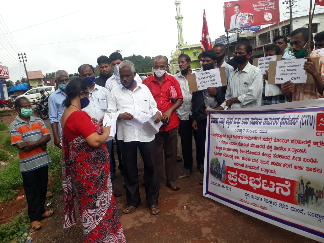ಸಂಕಷ್ಟದಲ್ಲಿರುವ ಕಟ್ಟಡ ಕಾರ್ಮಿಕರಿಗೆ ಸಮಗ್ರ ಕೋವಿಡ್ ಪರಿಹಾರಕ್ಕೆ ಆಗ್ರಹಿಸಿ ಹಾಗೂ ಕಲ್ಯಾಣ ಮಂಡಳಿಯು ಕೋವಿಡ್ ಪರಿಹಾರದ ಲೆಕ್ಕ ನೀಡಲು ಒತ್ತಾಯಿಸಿ, ಕಲ್ಯಾಣ ಮಂಡಳಿಗಳನ್ನು ವಿಲೀನಗೊಳಿಸುವ ಕೇಂದ್ರ ಸರಕಾರದ ನೀತಿ ಖಂಡಿಸಿ, ಕೋವಿಡ್ ಪರಿಹಾರಕ್ಕೆ ಅರ್ಜಿ ಹಾಕಲು ಬಾಕಿ ಇರುವ ಕಾರ್ಮಿಕರಿಗೆ ಅರ್ಜಿ ಹಾಕಲು ಅವಕಾಶ ನೀಡುವಂತೆ ಒತ್ತಾಯಿಸಿ ಪ್ರತಿಭಟನೆ ನಡೆಯಿತು.