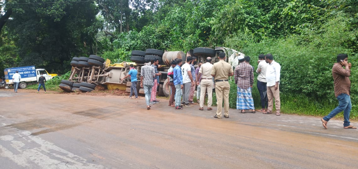 ಸಿಮೆಂಟ್ ಹುಡಿ ತುಂಬಿಕೊಂಡು ಬರುತ್ತಿದ್ದ ಟ್ಯಾಂಕರ್, ಪುತ್ತೂರು ತಾಲೂಕಿನ ಬಜತ್ತೂರು ಗ್ರಾಮದ ನೀರಕಟ್ಟೆ ಬಳಿ ಬರುತ್ತಿದ್ದಾಗ ಮಗುಚಿ ಬಿದ್ದಿದೆ. ಗಾಯಾಳು ಚಾಲಕ ಗಣೇಶ್ ನನ್ನು ನೆಲ್ಯಾಡಿ ಆಸ್ಪತ್ರೆಗೆ ಕರೆದೊಯ್ದು ನಂತರ ಮಂಗಳೂರು ಆಸ್ಪತ್ರೆಗೆ ದಾಖಲಿಸಲಾಗಿದೆ ಎಂದು ತಿಳಿದು ಬಂದಿದೆ.