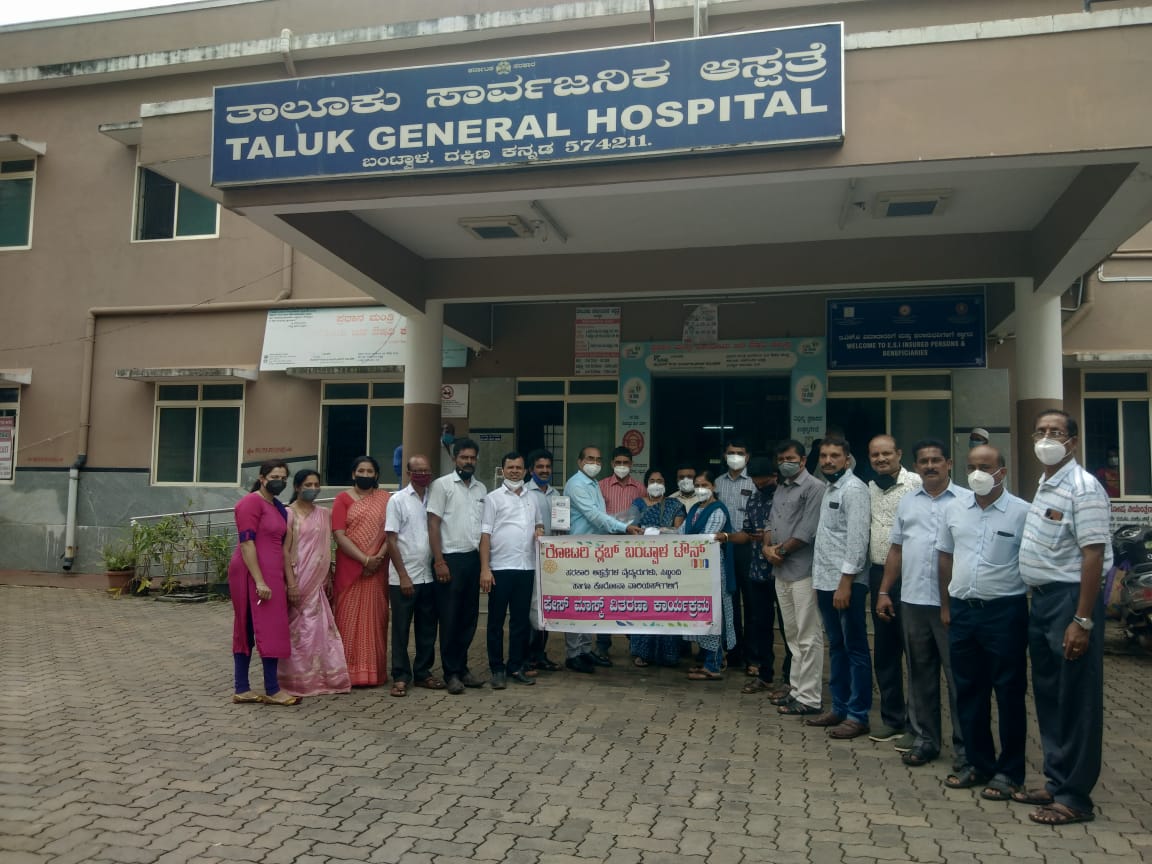 ಬಂಟ್ವಾಳ: ರೋಟರಿ ಕ್ಲಬ್ ಬಂಟ್ವಾಳ ಟೌನ್ ನಿಂದ ತಾಲೂಕಿನ ಹಲವು ಸಾರ್ವಜನಿಕ ಸರ್ಕಾರಿ ಆಸ್ಪತ್ರೆಗಳಿಗೆ ಫೇಸ್ ಮಾಸ್ಕ್ ವಿತರಿಸಲಾಯಿತು. ಬಂಟ್ವಾಳ, ಬೆಂಜನಪದವು, ಬಾಳ್ತಿಲ, ಮಂಚಿ ಆರೋಗ್ಯಕೇಂದ್ರಗಳ ಆರೋಗ್ಯಾಧಿಕಾರಿ, ಸಿಬ್ಬಂದಿವರ್ಗ, ಆಶಾಕಾರ್ಯಕ್ರತೆಯರಿಗೆ ಫೇಸ್ ಮಾಸ್ಕ್ ವಿತರಣೆಯನ್ನು ಅಧ್ಯಕ್ಷ ಪದ್ಮನಾಭ ರೈ ನೇತೃತ್ವದಲ್ಲಿ ನಡೆಸಲಾಯಿತು. ತಾಲೂಕು ಸಾರ್ವಜನಿಕ ಆಸ್ಪತ್ರೆ ಬಂಟ್ವಾಳದ ಆಡಳಿತ ವೈದ್ಯಾಧಿಕಾರಿ ಡಾ. ಪುಷ್ಪಲತಾ ಎನ್, ರೋಟರಿ ಟೌನ್ ಪ್ರಮುಖರಾದ ಚಂದ್ರಹಾಸ್ ಶೆಟ್ಟಿ, ಗಾಯತ್ರಿ ಲೋಕೇಶ್, ಆಶಾಮಣಿ ಡಿ ರೈ, ಸುಜಾತ ಪಿ ರೈ, ಆಲ್ಬರ್ಟ್ ಮೆನೆಜಸ್, ಕಿಶೋರ್, ಚಿತ್ತರಂಜನ್ ಶೆಟ್ಟಿ ಬೊಂಡಾಲ, ಗಣೇಶ್ ಶೆಟ್ಟಿ ಗೋಳ್ತಮಜಲು, ರಾಜೇಶ್, ಸುಧೀರ್ ಶೆಟ್ಟಿ, ಕೇಶವ ನಾಯ್ಕ್, ಜ್ಯೋತಿಂದ್ರ ಶೆಟ್ಟಿ, ದಯಾನಂದ ಶೆಟ್ಟಿ, ಸತೀಶ್ ಕುಮಾರ್, ಗಣೇಶ್ ಸುವರ್ಣ, ಪ್ರಶಾಂತ್ ಕಾರಂತ್, ಸುಂದರ್ ಬಂಗೇರ, ರಮೇಶ್ ನೆಟ್ಲ, ದಿವಾಕರ್ ಶೆಟ್ಟಿ ಈ ವೇಳೆ ಇದ್ದರು.