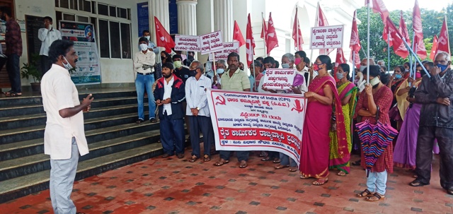 ಸಿಪಿಐ ಜಿಲ್ಲಾ ಕಾರ್ಯದರ್ಶಿ ವಿ.ಕುಕ್ಯಾನ್, ಜಿಲ್ಲಾ ಸಹಕಾರ್ಯದರ್ಶಿ ಬಿ. ಶೇಖರ್ ಪ್ರತಿಭಟನಕಾರರನ್ನು ಉದ್ದೇಶಿಸಿ ಮಾತನಾಡಿದರು. ಸಂಘಟನೆಯ ಪ್ರಮುಖರಾದ ಎಚ್. ವಿ. ರಾವ್, ಶ್ರೀನಿವಾಸ ಭಂಡಾರಿ, ಪ್ರೇಮನಾಥ ಕೆ, ಭಾರತ್ ಪ್ರಶಾಂತ್, ಆರ್. ಡಿ. ಸೋನ್ಸ್, ಸರಸ್ವತಿ ಕಡೇ ಶಿವಾಲಯ, ರತಿ ಎಸ್., ಬಾಬು ಭಂಡಾರಿ, ದಿನೇಶ್ ಮಂಗಳೂರು, ಹರ್ಷಿತ್, ಕೇಶವತಿ, ಕುಸುಮ, ದೀಪಕ್ ಮಂಗಳೂರು, ಸುಧಾಕರ ಕಲ್ಲೂರು ಉಪಸ್ಥಿತರಿದ್ದರು. ಸುರೇಶ್ ಕುಮಾರ್ ಸ್ವಾಗತಿಸಿ, ನಿರೂಪಿಸಿದರು. ಪ್ರೇಮನಾಥ್ ಕೆ ವಂದಿಸಿದರು.