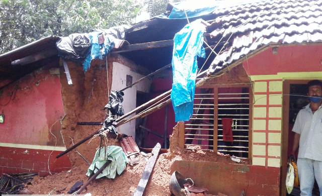 . ಕೆದಿಲ ಗ್ರಾಮದ ಗಿರಿಯಪ್ಪ ಗೌಡರ ಮನೆಗೆ ತಾಗಿಕೊಂಡಿರುವ ಕೊಟ್ಟಿಗೆ ಗೋಡೆ ಕುಸಿದು ಭಾಗಶಃ ಹಾನಿ ಉಂಟಾಗಿದೆ.