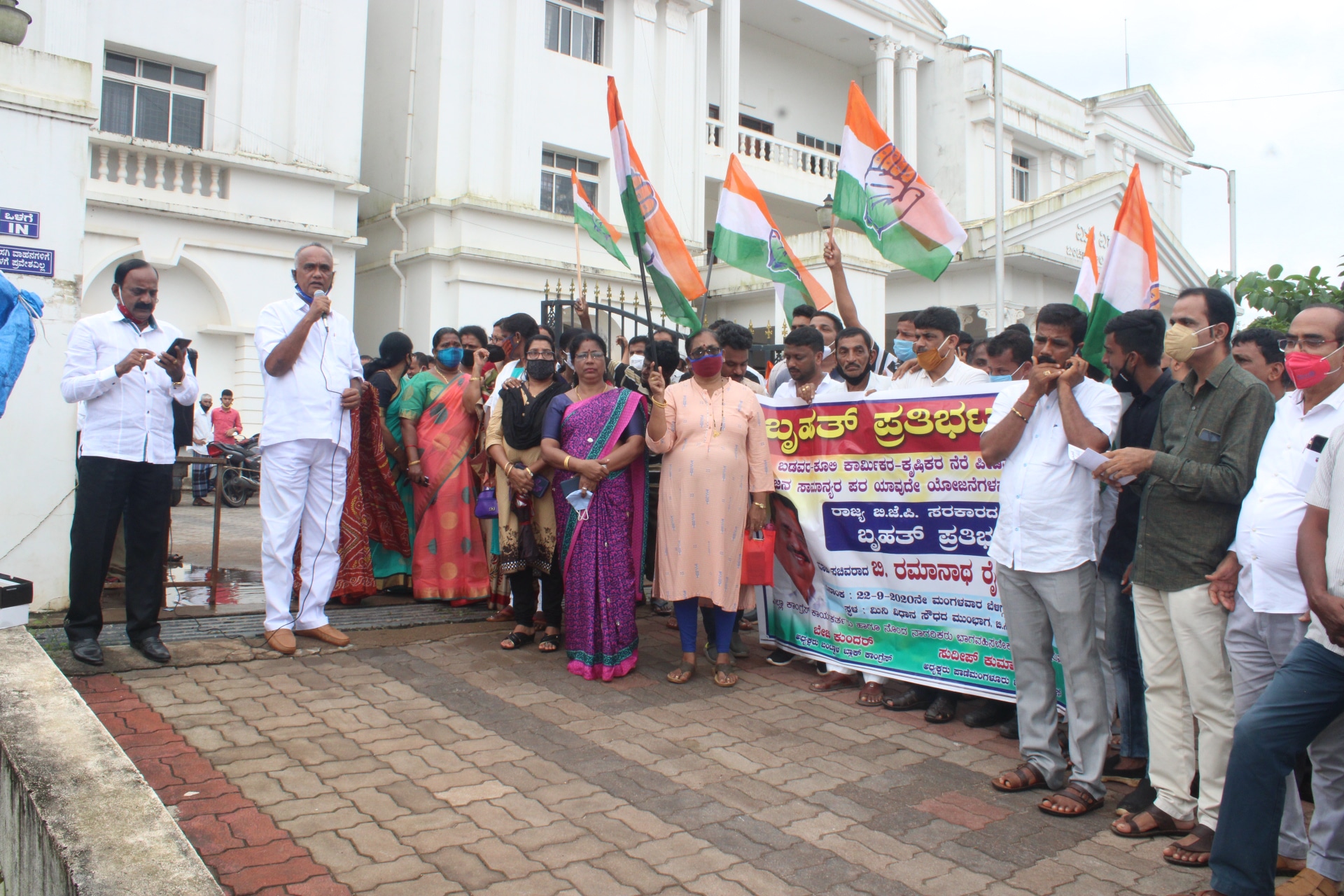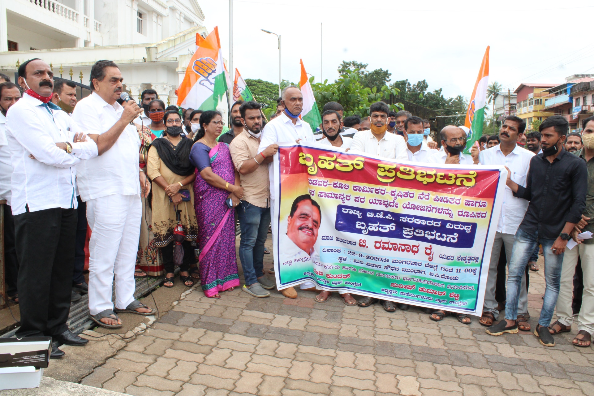 ರಾಜ್ಯ ಸರ್ಕಾರ ಬಡವರ, ಕೂಲಿ ಕಾರ್ಮಿಕರ, ಕೃಷಿಕರ, ನೆರೆಪೀಡಿತರ ಮತ್ತು ಜನಸಾಮಾನ್ಯರ ಪರವಾಗಿಲ್ಲ ಎಂದು ಆರೋಪಿಸಿ ಬಂಟ್ವಾಳ ಮಿನಿ ವಿಧಾನಸೌಧ ಮುಂಭಾಗ ಪಾಣೆಮಂಗಳೂರು ಮತ್ತು ಬಂಟ್ವಾಳ ಬ್ಲಾಕ್ ಕಾಂಗ್ರೆಸ್ ವತಿಯಿಂದ ಮಂಗಳವಾರ ಪ್ರತಿಭಟನೆ ನಡೆಯಿತು.