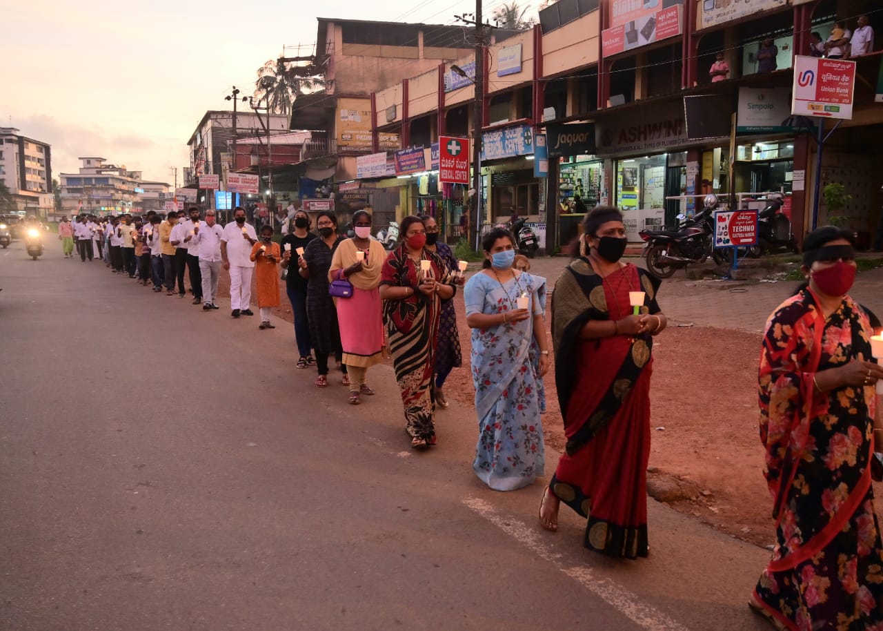 ಬಂಟ್ವಾಳ: ಉತ್ತರ ಪ್ರದೇಶದಲ್ಲಿ ದಲಿತ ಯುವತಿಯ ಅತ್ಯಾಚಾರ ಪ್ರಕರಣ ಮತ್ತು ಹತ್ಯೆ ಘಟನೆಯಾಗಿದ್ದು, ಮಹಿಳೆಯರ ರಕ್ಷಣೆಗೆ ಕೇಂದ್ರ ಸರ್ಕಾರ ಮತ್ತು ಉತ್ತರ ಪ್ರದೇಶ ಸರ್ಕಾರ ವಿಫಲವಾಗಿದೆ ಎಂದು ಆರೋಪಿಸಿ ಮಾಜಿ ಸಚಿವ ಬಿ.ರಮಾನಾಥ ರೈ ನೇತೃತ್ವದಲ್ಲಿ ಬಿ.ಸಿ.ರೋಡಿನ ಪೊಳಲಿ ದ್ವಾರದಿಂದ ರಕ್ತೇಶ್ವರಿ ದೇವಸ್ಥಾನದ ಮುಂಭಾಗದವರೆಗೆ ಕಾಂಗ್ರೆಸ್ ವತಿಯಿಂದ ಮೊಂಬತ್ತಿ ಜಾಥಾ ಶುಕ್ರವಾರ ಮುಸ್ಸಂಜೆ ನಡೆಯಿತು.