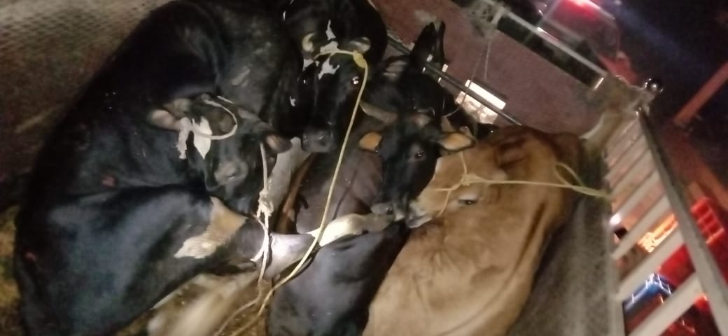 ಬಂಟ್ವಾಳ ತಾಲೂಕು, ಕಾವಳಮುಡೂರು ಗ್ರಾಮದ, ಎನ್.ಸಿ ರೋಡ್ ಎಂಬಲ್ಲಿ 6-7 ಮಂದಿ ಎಲ್ಲಿಂದಲೋ ಕದ್ದು ತಂದ ದನಕರುಗಳನ್ನು ವಧೆ ಮಾಡುವ ಸಲುವಾಗಿ ಅಕ್ರಮವಾಗಿ ಸಾಗಾಟ ಮಾಡಲು ಮಿನಿ ಟೆಂಪೋವೊಂದಕ್ಕೆ ತುಂಬಿಸುತ್ತಿದ್ದಾಗ ಪುಂಜಾಲಕಟ್ಟೆ ಠಾಣಾ ಪೊಲೀಸ್ ಉಪನಿರೀಕ್ಷಕಿ ಸೌಮ್ಯಾ ಠಾಣಾ ಸಿಬ್ಬಂದಿಗಳೊಂದಿಗೆ ದಾಳಿ ನಡೆಸಿ ಅಂದಾಜು 31 ಸಾವಿರ ರೂ ಬೆಲೆಬಾಳುವ 7 ಹಸುಗಳು,9 ಕರುಗಳು ಹಾಗೂ ಸ್ಕಾರ್ಫಿಯೋ,, ಓಮ್ನಿ ಕಾರುಗಳು, ಮಿನಿ ಟೆಂಪೋ, ಎರಡು ದ್ವಿಚಕ್ರ ವಾಹನಗಳು, 5 ಮೊಬೈಲ್ ಸೆಟ್ಗಳು ಸೇರಿ ಅಂದಾಜು ಮೌಲ್ಯ 12.48 ಲಕ್ಷ ರೂ ಸೊತ್ತುಗಳನ್ನು ವಶಕ್ಕೆ ಪಡೆದು ಆರೋಪಿಗಳ ಪೈಕಿ ಮೊಹಮ್ಮದ್ ರಾಹೀಲ್ (18) ಎಂಬಾತನನ್ನು ಬಂಧಿಸಿದ್ದು, ಉಳಿದ ಆರೋಪಿಗಳು ಪರಾರಿಯಾಗಿರುತ್ತಾರೆ. ಈ ಬಗ್ಗೆ ಪುಂಜಾಲಕಟ್ಟೆ ಪೊಲೀಸ್ ಠಾಣೆಯಲ್ಲಿ ಕಲಂ: 379 ಐಪಿಸಿ & ಕಲಂ: 4,5,8,9,11,13 ಕರ್ನಾಟಕ ಗೋವಧೆ ಪ್ರತಿಬಂಧಕ ಹಾಗೂ ಜಾನುವಾರು ಸಂರಕ್ಷಣಾ ಅಧಿನಿಯಮ 1964 & ಕಲಂ: 66 ಜೊತೆಗೆ 192(ಎ) ಐ ಎಂ ವಿ ಕಾಯ್ದೆ & ಕಲಂ: 41(1)(ಡಿ) ಜೊತೆಗೆ 102 ಸಿಆರ್ಪಿಸಿ ಯಂತೆ ಪ್ರಕರಣ ದಾಖಲಿಸಲಾಗಿದೆ.