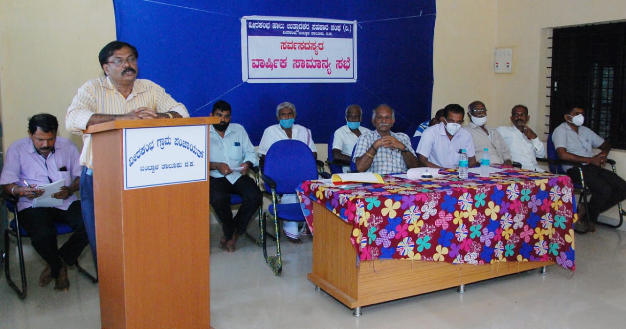 ಬಂಟ್ವಾಳ: ವೀರಕಂಬ ಹಾಲು ಉತ್ಪಾದಕರ ಸಹಕಾರ ಸಂಘ ನಿಯಮಿತ ಇದರ 2019 -20 ನೇ ಸಾಲಿನ ಸರ್ವಸದಸ್ಯರ ವಾರ್ಷಿಕ ಸಾಮಾನ್ಯ ಸಭೆ ವೀರಕಂಭ ಗ್ರಾಮ ಪಂಚಾಯತಿನ ರಾಜೀವ ಗಾಂಧಿ ಸಭಾಂಗಣದಲ್ಲಿ ಸಂಘದ ಅಧ್ಯಕ್ಷ ದಿಲೀಪ್ ಕುಮಾರ್ ಅಧ್ಯಕ್ಷತೆಯಲ್ಲಿ ನಡೆಯಿತು.