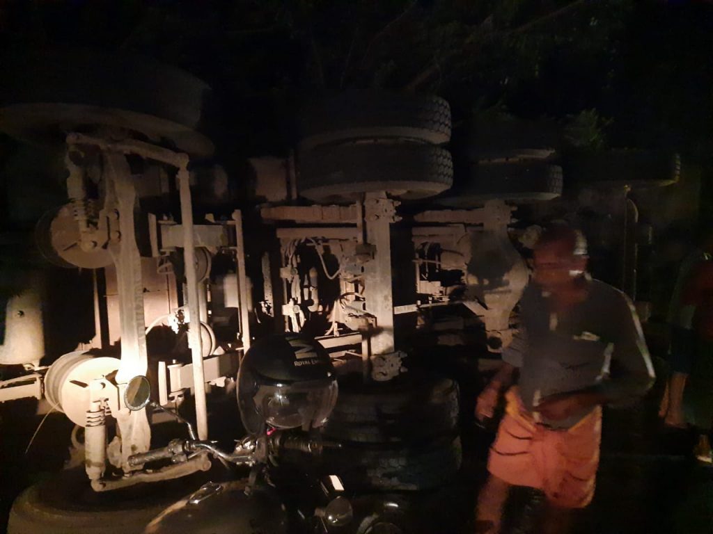 ಟ್ರಕ್ ಒಂದು ಚಾಲಕನ ನಿಯಂತ್ರಣ ಕಳೆದುಕೊಂಡು ಪಲ್ಟಿಯಾದ ಘಟನೆ ಬಂಟ್ವಾಳ ತಾಲೂಕಿನ ರಾ.ಹೆ.75ರ ನರಹರಿ ಪರ್ವತ ಬಳಿ ಕೃಷ್ಣಕೋಡಿ ಎಂಬಲ್ಲಿ ನಡೆದಿದೆ. ಘಟನೆಯಲ್ಲಿ ಗಂಭೀರ ಗಾಯಗೊಂಡ ಚಾಲಕ ಅಕ್ರಮ್ ಬಾಷಾ ಆಸ್ಪತ್ರೆಯಲ್ಲಿ ಮೃತಪಟ್ಟಿರುವುದಾಗಿ ಪೊಲೀಸರು ತಿಳಿಸಿದ್ದಾರೆ. ಮಂಗಳೂರಿನಿಂದ ಬೆಂಗಳೂರು ಕಡೆಗೆ ಘನಗಾತ್ರದ ಲಾರಿಯಲ್ಲಿ ಅಧಿಕ ಭಾರದ ವಯರ್ ಗಳನ್ನು ತುಂಬಿಸಿಕೊಂಡು ಹೋಗುತ್ತಿದ್ದ ಟ್ರಕ್ ಚಾಲಕನ ನಿಯಂತ್ರಣ ತಪ್ಪಿ ರಸ್ತೆಗೆ ಪಲ್ಟಿಯಾಗಿದೆ.