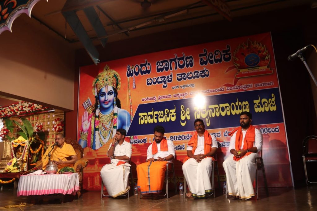 ಬಂಟ್ವಾಳ: ಹಿಂದು ಜಾಗರಣಾ ವೇದಿಕೆಯ ಬಂಟ್ವಾಳ ತಾಲೂಕು ಆಶ್ರಯದಲ್ಲಿ ಭಾನುವಾರ ಶ್ರೀ ರಕ್ತೇಶ್ವರಿ ದೇವಿ ದೇವಸ್ಥಾನದಲ್ಲಿ ಸಾರ್ವಜನಿಕ ಶ್ರೀ ಸತ್ಯನಾರಾಯಣ ಪೂಜೆ ಹಾಗೂ ಧಾರ್ಮಿಕ ಸಭೆ ಅಯೋಧ್ಯೆ ಶ್ರೀ ರಾಮ ಜನ್ಮಸ್ಥಾನ ಮುಕ್ತಿ ಆಂದೋಲನದ ವಿಜಯೋತ್ಸವದ ಅಂಗವಾಗಿ ನಡೆಯಿತು.