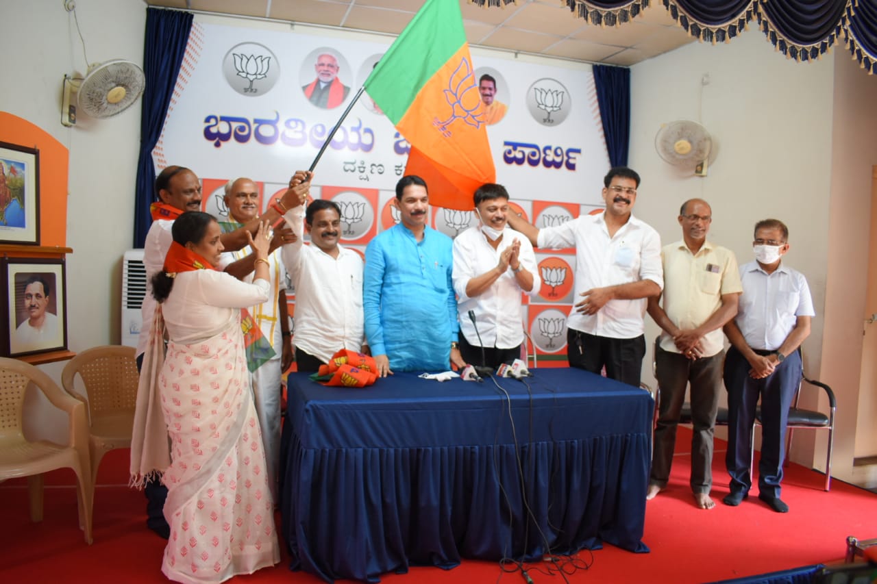 ಮಂಗಳೂರು: ಜಿಲ್ಲಾ ಕಾಂಗ್ರೆಸ್ ನ ಹಿಂದುಳಿದ ವರ್ಗಗಳ ಘಟಕ ಅಧ್ಯಕ್ಷರಾಗಿದ್ದ ಮಾಧವ ಮಾವೆ, ಜಿಪಂ ಸದಸ್ಯೆ ಮಂಜುಳಾ ಮಾಧವ ಮಾವೆ, ತಾಪಂ ಸದಸ್ಯತ್ವಕ್ಕೆ ಎರಡು ದಿನಗಳ ಹಿಂದೆ ರಾಜೀನಾಮೆ ನೀಡಿದ್ದ ಕುಮಾರ ಭಟ್ ಬದಿಕೋಡಿ ಸಹಿತ ಹಲವರು ಮಂಗಳೂರಿನ ಬಿಜೆಪಿ ಜಿಲ್ಲಾ ಕಚೇರಿಯಲ್ಲಿ ಶುಕ್ರವಾರ ಬಿಜೆಪಿಗೆ ವಿಧ್ಯುಕ್ತವಾಗಿ ಸೇರ್ಪಡೆಗೊಂಡರು.