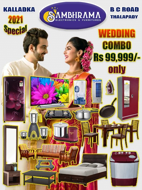 ಏನಿದು ವೆಡ್ಡಿಂಗ್ ಕೊಂಬೊ? ಸಾಮಾನ್ಯವಾಗಿ ವಿವಾಹವಾಗಿ ಹೊಸ ಬದುಕು ಪ್ರವೇಶಿಸುವವರಿಗೆ, ಹೊಸ ಮನೆಯನ್ನು ಪ್ರವೇಶಿಸುವವರಿಗೆ ಗೃಹೋಪಯೋಗಿ ವಸ್ತುಗಳ ಅವಶ್ಯಕತೆಯೂ ಇರುತ್ತದೆ. ಇದಕ್ಕಾಗಿಯೇ ನಾನಾ ಮಳಿಗೆಗಳನ್ನು ತಿರುಗಾಡುತ್ತಾ, ಸಮಯವನ್ನು ವ್ಯರ್ಥ ಮಾಡುವ ಬದಲು ಒಂದೇ ಸೂರಿನಡಿ ಎಲ್ಲವನ್ನೂ ಪಡೆದುಕೊಳ್ಳಲು ಸುಲಭವಾಗುವಂತೆ ಮತ್ತು ಆಕರ್ಷಕ ಆಫರ್ ದರಪಟ್ಟಿಯಲ್ಲೇ ಇದನ್ನು ಒದಗಿಸಲು ಈ ವೆಡ್ಡಿಂಗ್ ಕೊಂಬೊ ಆಯೋಜಿಸಿದ್ದೇವೆ. ಜನವರಿ 2021ರಲ್ಲಿ ವಿವಾಹವಾಗುವವರಿಗೆ 99,999 ರೂಗಳಿಗೆ ಈ ಎಲ್ಲಾ ಅವಶ್ಯಕ ಉಪಕರಣಗಳನ್ನು ಖರೀಸಿದಬಹುದು ಎಂದು ಹೇಳುತ್ತಾರೆ ಗಿರೀಶ್.