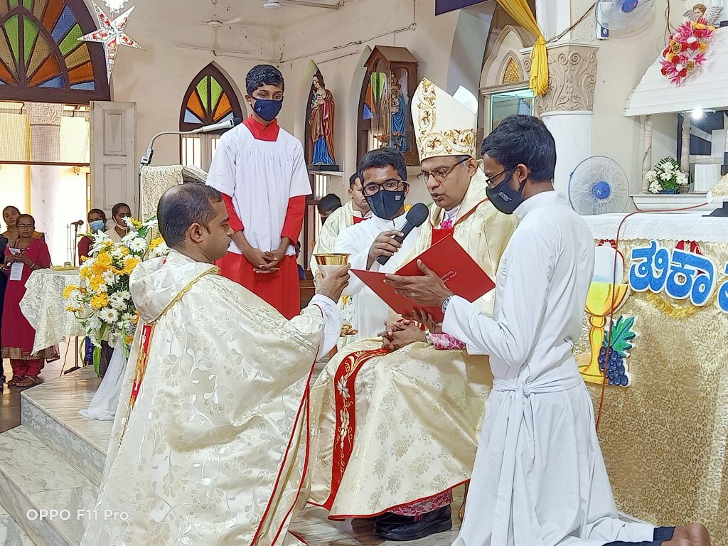 ಬಂಟ್ವಾಳ: ತಾಲೂಕಿನ ಲೊರೆಟ್ಟೊ ಮಾತಾ ಚರ್ಚ್ ಗೆ ಮಂಗಳೂರಿನ ಕೆಥೊಲಿಕ್ ಧರ್ಮಪ್ರಾಂತ್ಯದ ಧರ್ಮಾಧ್ಯಕ್ಷ ಅ.ವಂ.ಪೀಟರ್ ಪಾವ್ಲ್ ಸಲ್ದಾನಾ ಭೇಟಿ ನೀಡಿದರು. ಈ ಸಂದರ್ಭ ಲೊರೆಟ್ಟೊ ಚರ್ಚ್ ವ್ಯಾಪ್ತಿಯ ಕುರಿಯಾಳ ಗ್ರಾಮದ ಲೂಯಿಸ್ ಮತ್ತು ಬ್ರಿಡ್ಜಿಟ್ ಡೇಸಾ ದಂಪತಿ ಪುತ್ರರಾದ ವಂದನೀಯ ಮೆಲ್ವಿನ್ ಡೇಸಾ, ಎಸ್. ಜೆ .ಇವರಿಗೆ ಗುರುದೀಕ್ಷೆ ನೀಡಿ ಅವರಿಗಾಗಿ ಪ್ರಾರ್ಥಿಸಿದರು. ಅವರ ಕುಟುಂಬಸ್ಥರ ಹಾಗೂ ನೂರಾರು ಭಕ್ತರೊಂದಿಗೆ ಬಲಿಪೂಜೆ ಅರ್ಪಿಸಿದರು. ಇವರು ಗುಜರಾತ್ ಧರ್ಮಪ್ರಾಂತ್ಯದಲ್ಲಿ ಗುರುಗಳಾಗಿ ಸೇವೆ ಸಲ್ಲಿಸಲಿದ್ದಾರೆ. ಈ ಸಂದರ್ಭ ಧರ್ಮಾಧ್ಯಕ್ಷರು ಯೇಸುಕ್ರಿಸ್ತರ ಸೇವಾ ಹಾಗೂ ತ್ಯಾಗ-ಬಲಿದಾನಗಳ ಬೋಧನೆಯನ್ನು ನೀಡಿ ದರು. ಚರ್ಚಿನ ಧರ್ಮಗುರುಗಳಾದ ವಂದನೀಯ ಫ್ರಾನ್ಸಿಸ್ ಕ್ರಾಸ್ತ ಬಲಿ ಪೂಜೆಯಲ್ಲಿ ಪಾಲ್ಗೊಂಡ ಗುರುಗಳ ಪರವಾಗಿ ಅವರನ್ನು ಅಭಿನಂದಿಸಿದರು. ಗುಜರಾತ್ ಧರ್ಮಪ್ರಾಂತ್ಯದ ಎಸ್. ಜೆ. ಪ್ರೋ ವಿನ್ಸಿಯಲ್ ಅವರ ಪ್ರತಿನಿಧಿಯಾಗಿರುವ ವಂದನೀಯ ಜೇಮ್ಸ್ ವಾಸ್, ಎಸ್ .ಜೆ. ಅವರು ಧರ್ಮಾಧ್ಯಕ್ಷರಿಗೆ ಗುರು ದೀಕ್ಷೆ ನೀಡುವಂತೆ ವರದಿ ಒಪ್ಪಿಸಿದರು. ಮಂಗಳೂರು ಧರ್ಮಪ್ರಾಂತ್ಯದ ವಂದನೀಯ ವಿಜಯ್ ಮಚಾದೊ ರವರು ಧಾರ್ಮಿಕ ವಿಧಿ ವಿಧಾನಗಳನ್ನು ನಿರೂಪಿಸಿದರು.