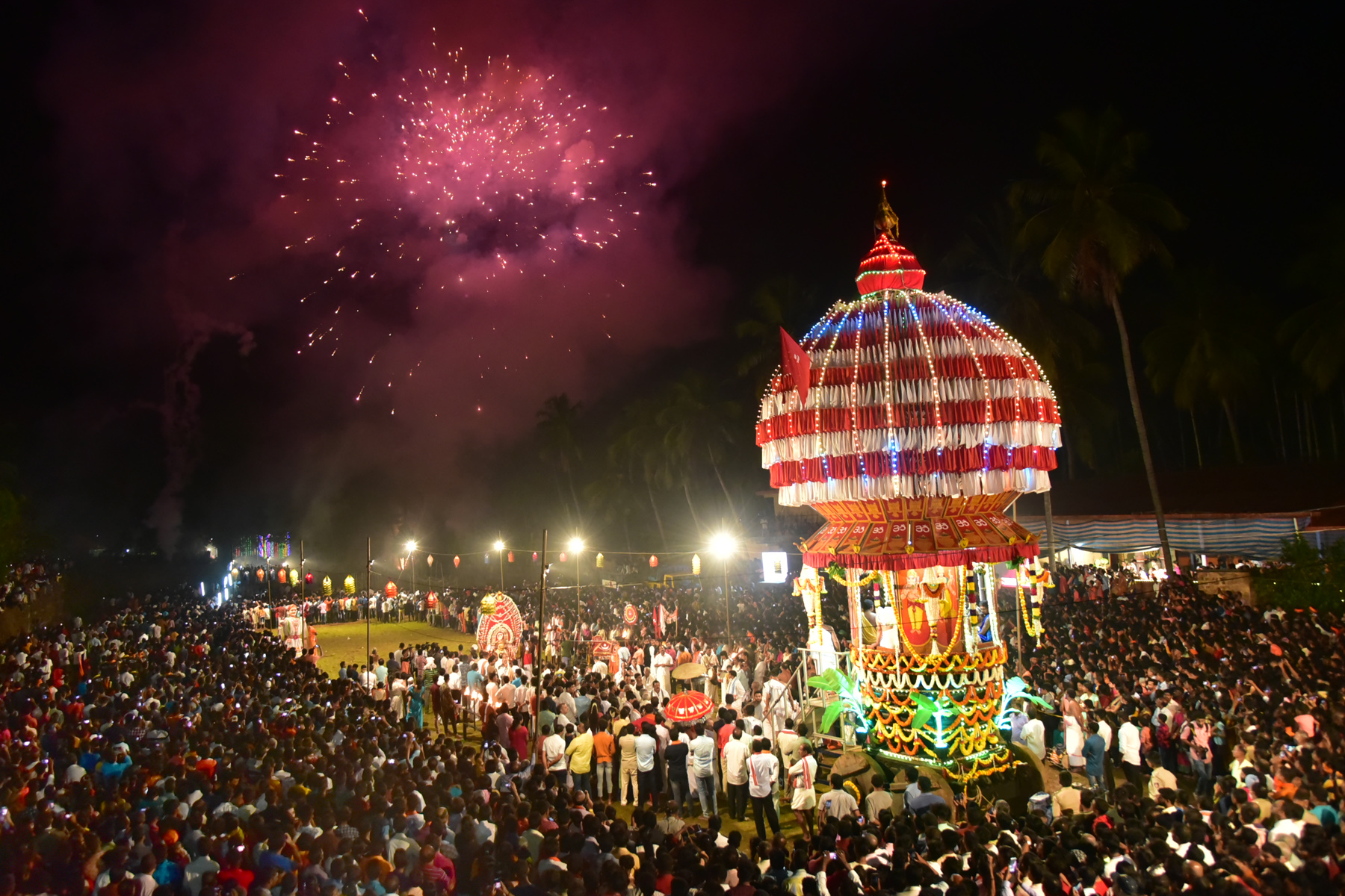 ಬಂಟ್ವಾಳ: ವಿಟ್ಲ ಶ್ರೀ ಪಂಚಲಿಂಗೇಶ್ವರ ದೇವಸ್ಥಾನದ ಜಾತ್ರೋತ್ಸವ ಹಿನ್ನೆಲೆಯಲ್ಲಿ ಗುರುವಾರ ರಾತ್ರಿ ವೈಭವದ ರಥೋತ್ಸವವನ್ನು ಸೇರಿದ್ದ ಸಾವಿರಾರು ಮಂದಿ ಕಣ್ತುಂಬಿಕೊಂಡರು. ಈ ವೇಳೆ ಸಿಡಿಮದ್ದುಗಳ ಚಿತ್ತಾಕರ್ಷಕ ಪ್ರದರ್ಶನವೂ ನಡೆಯಿತು.ಧ್ವಜಾರೋಹಣ, ಉತ್ಸವಬಲಿ, ಕಟ್ಟೆಪೂಜೆಬಳಿಕಬಟ್ಟಲುಕಾಣಿಕೆ ನೀಡುವುದರೊಂದಿಗೆ ಜಾತ್ರೆ ಆರಂಭಗೊಂಡಿತ್ತು. ನಿತ್ಯೋತ್ಸವಗಳ ಜೊತೆಗೆ ಕೇಪುವಿನಿಂದಶ್ರೀಮಲರಾಯದೈವದಭಂಡಾರಆಗಮಿಸಿ ಜಾತ್ರೆ ವೈಭವವನ್ನು ಇಮ್ಮಡಿಗೊಳಿಸಿತ್ತು. ಪ್ರತಿದಿನ ವಿವಿಧ ಉತ್ಸವಗಳು ನಡೆದ ಬಳಿಕ ಗುರುವಾರ ರಾತ್ರಿ ಮಹಾರಥೋತ್ಸವನಡೆಯಿತು. ಬೆಳಗ್ಗೆದರ್ಶನಬಲಿ, ರಾಜಾಂಗಣದಬಟ್ಲುಕಾಣಿಕೆ, ಪ್ರಸಾದವಿತರಣೆ,ಕಡಂಬುವಿನಿಂದಕೊಡಮಣಿತ್ತಾಯದೈವದಭಂಡಾರಕ್ಷೇತ್ರಕ್ಕೆಆಗಮನ, ರಾತ್ರಿಮಹಾರಥೋತ್ಸವಬೀದಿಮೆರವಣಿಗೆ, ಶಯನೋತ್ಸವನಡೆಯಿತು. ಅವಭೃತ ಸ್ನಾನ ಕೊಡಂಗಾಯಿಗೆ ಸವಾರಿ ಧ್ವಜಾವರೋಹಣ, ಸಂಪ್ರೋಕ್ಷಣೆ ಬಳಿಕ ಕೇಪುವಿನ ಶ್ರೀ ಮಲರಾಯ ದೈವಕ್ಕೆ ನೇಮೋತ್ಸವ ನಡೆಯಲಿದೆ.