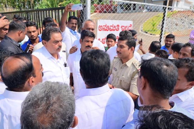 ಶನಿವಾರ ಬೆಳಗ್ಗೆ ತಾಪಂ ಅಧ್ಯಕ್ಷ ಚಂದ್ರಹಾಸ ಕರ್ಕೇರ, ಉಪಾಧ್ಯಕ್ಷ ಬಿ.ಎಂ.ಅಬ್ಬಾಸ್ ಆಲಿ, ಜಿಪಂ ಸದಸ್ಯರಾದ ಚಂದ್ರಪ್ರಕಾಶ ಶೆಟ್ಟಿ, ಎಂ.ಎಸ್.ಮಹಮ್ಮದ್, ಪದ್ಮಶೇಖರ ಜೈನ್ ಸಹಿತ ಜನಪ್ರತಿನಿಧಿಗಳ ಜೊತೆ ಮಾಜಿ ಸಚಿವ ಬಿ.ರಮಾನಾಥ ರೈ, ಬಂಟ್ವಾಳ ಬ್ಲಾಕ್ ಕಾಂಗ್ರೆಸ್ ಅಧ್ಯಕ್ಷ ಬೇಬಿ ಕುಂದರ್, ನೇತೃತ್ವದಲ್ಲಿ ತಂಡ ಸರಪಾಡಿಯಲ್ಲಿರುವ ಘಟಕಕ್ಕೆ ಭೇಟಿ ನೀಡಿದ ಸಂದರ್ಭ ಇದನ್ನು ಬಲವಾಗಿ ವಿರೋಧಿಸಿದ ಬಿಜೆಪಿಯ ಯುವ ಮೋರ್ಚಾ ಜಿಲ್ಲಾ ಪ್ರಧಾನ ಕಾರ್ಯದರ್ಶಿ ಸುದರ್ಶನ ಬಜ, ಯುವ ಮೋರ್ಚಾ ಕ್ಷೇತ್ರಾಧ್ಯಕ್ಷ ಪ್ರದೀಪ್ ಅಜ್ಜಿಬೆಟ್ಟು, ನರಿಕೊಂಬು ಗ್ರಾಪಂ ಮಾಜಿ ಅಧ್ಯಕ್ಷ ಯಶೋಧರ ಕರ್ಬೆಟ್ಟು ಸಹಿತ ಬಿಜೆಪಿ ಕಾರ್ಯಕರ್ತರು ಧಿಕ್ಕಾರ ಘೋಷಣೆ ಕೂಗಿ ಆಕ್ಷೇಪ ವ್ಯಕ್ತಪಡಿಸಿದರು. ಇದೇ ಹೊತ್ತಿನಲ್ಲಿ ಕಾಂಗ್ರೆಸ್ ಕಾರ್ಯಕರ್ತರೂ ಅದೇ ಜಾಗದಲ್ಲಿ ಜಮಾಯಿಸಿ ಘೋಷಣೆ, ಪ್ರತಿಘೋಷಣೆ ಸಹಿತ ಮಾತಿನ ಚಕಮಕಿಯನ್ನು ನಡೆಸತೊಡಗಿದರು. ಎರಡೂ ತಂಡಗಳನ್ನು ನಿಯಂತ್ರಿಸಲು ಬಂಟ್ವಾಳ ಸರ್ಕಲ್ ಇನ್ಸ್ ಪೆಕ್ಟರ್ ಟಿ.ಡಿ.ನಾಗರಾಜ್, ಸಬ್ ಇನ್ಸ್ ಪೆಕ್ಟರ್ ಗಳಾದ ಪ್ರಸನ್ನ, ಅವಿನಾಶ್, ಕಲೈಮಾರ್ ಮತ್ತು ರಾಜೇಶ್ ಸಹಿತ ಸ್ಥಳದಲ್ಲಿದ್ದ ಪೊಲೀಸ್ ಸಿಬ್ಬಂದಿ ಹರಸಾಹಸಪಟ್ಟರು. ಕೊನೆಗೆ ಸರ್ಕಲ್ ಇನ್ಸ್ ಪೆಕ್ಟರ್ ಮನವೊಲಿಸಿದ ಬಳಿಕ ಪರಿಸ್ಥಿತಿ ತಿಳಿಗೊಂಡಿತು. ಈ ಸಂದರ್ಭ ಸ್ಥಳಕ್ಕೆ ಅಧಿಕಾರಿಗಳು ಆಗಮಿಸಬೇಕು ಎಂದು ಒತ್ತಾಯಿಸಿ, ಕಾಂಗ್ರೆಸ್ ಸದಸ್ಯರು ರೈ ನೇತೃತ್ವದಲ್ಲಿ ಧರಣಿ ಕುಳಿತರು.
