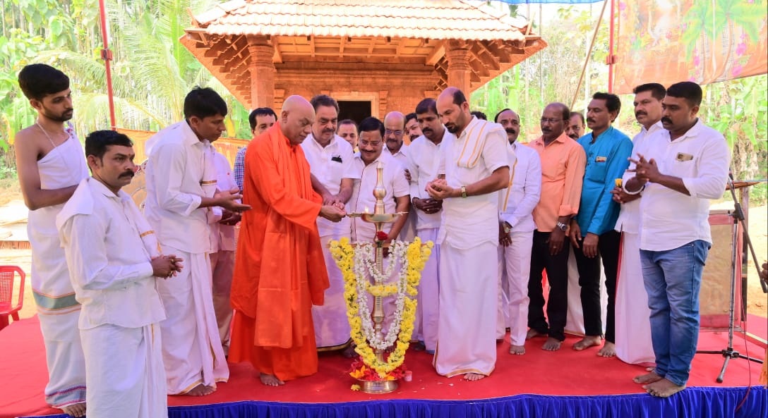 ಬಂಟ್ವಾಳ ಕಸಬಾ ಗ್ರಾಮದ ಕಾರಂಬಡೆಯಲ್ಲಿ ಪುನರ್ ನಿರ್ಮಾಣಗೊಳ್ಲುತ್ತಿರುವ ಶ್ರೀ ಮಹಾಮ್ಮಾಯಿ ಕ್ಷೇತ್ರದ ಬ್ರಹ್ಮಕಲಶೋತ್ಸವ ಸಮಾಲೋಚನಾ ಸಭೆಯಲ್ಲಿ ಆಶ್ರೀರ್ವಚನ ನೀಡಿದರು.