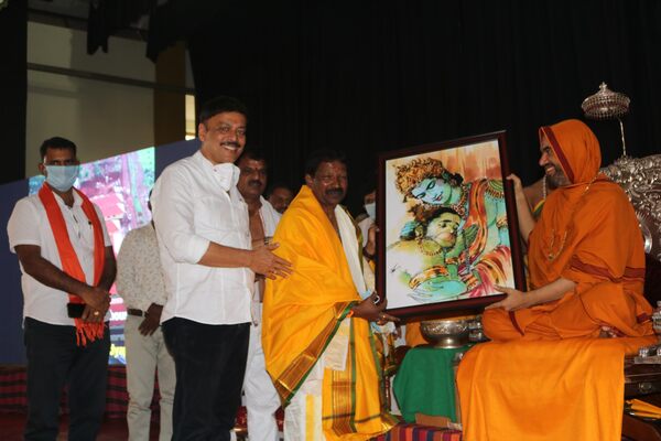 ಬಂಟ್ವಾಳ: ಮತ್ತು ಮೀನುಗಾರಿಕಾ ಸಚಿವ ಎಸ್.ಅಂಗಾರ ಅವರು ಶ್ರೀ ಮಾಣಿ ಪೆರಾಜೆಯ ಶ್ರೀ ರಾಮಚಂದ್ರಾಪುರ ಮಠದಲ್ಲಿ ಬಂದರು ರಾಮಚಂದ್ರಾಪುರ ಮಠದ ಶ್ರೀ ರಾಘವೇಶ್ವರ ಭಾರತೀ ಸ್ವಾಮೀಜಿ ಅವರ ಆಶೀರ್ವಾದ ಪಡೆದರು. ಈ ಸಂದರ್ಭ ಬಂಟ್ವಾಳ ಶಾಸಕ ರಾಜೇಶ್ ಯು. ನಾಯ್ಕ್ ಉಪಸ್ಥಿತರಿದ್ದರು. ಆಶೀರ್ವಚನ ನೀಡಿದ ಶ್ರೀಗಳು, “ಉತ್ತಮ ಸಮಾಜ ಸೇವೆಗೆ ಅವಕಾಶಗಳು ಹುಡುಕಿಕೊಂಡು ಬರುತ್ತವೆ” ಎಂದು ಹಾರೈಸಿದರು.