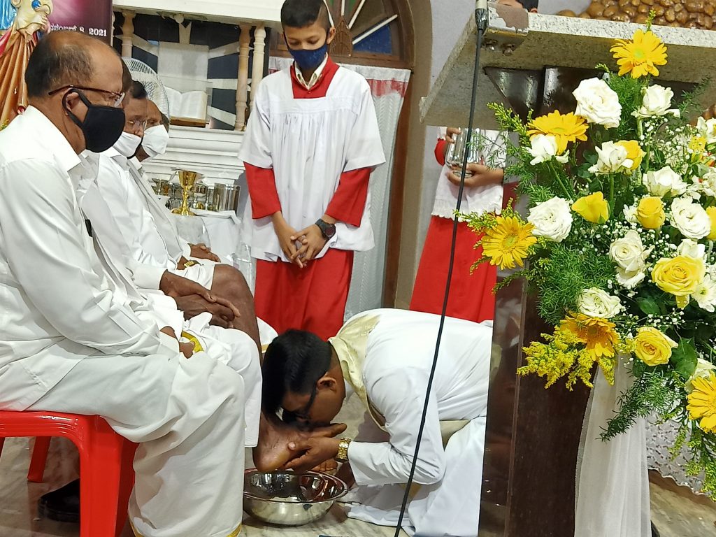 ಬಂಟ್ವಾಳ: ಏಸುಕ್ರಿಸ್ತರರನ್ನು ಶಿಲುಬೆಗೇರಿಸುವ ಮುನ್ನ ದಿನವವದ ಗುರುವಾರ,ಪರಮ ಪ್ರಸಾದ ಸಂಸ್ಕಾರವನ್ನು ಕಥೊಲಿಕ್ ಪವಿತ್ರ ಸಭೆಗೆ ಅರ್ಪಿಸಿ ತನ್ನ ಶಿಷ್ಯ ರೊಂದಿಗೆ ಕೊನೆಯ ಔತಣ ಕೂಟದಲ್ಲಿ,ತನ್ನ12 ಮಂದಿ ಶಿಷ್ಯರ ಪಾದಗಳನ್ನು ತೊಳೆದು ಪವಿತ್ರ ಸಭೆಗೆ ತ್ಯಾಗ, ಕ್ಷಮೆ, ಸೇವೆಯ ಸಂದೇಶವನ್ನು ಸಾರುವ ಈ ಸಂದರ್ಭದಲ್ಲಿ ಲೋರೆಟ್ಟೋ ಮತಾ ಚರ್ಚ್ ನ ಧರ್ಮಗುರುಗಳಾದ ವಂ.ಫ್ರಾನ್ಸಿಸ್ ಕ್ರಾಸ್ತಾ ರವರು ಚರ್ಚ್ ವ್ಯಾಪ್ತಿಯ 12 ನೇಮಿಸಿದ ಸದಸ್ಯರ ಪಾದ ಗಳನ್ನು ತೊಳೆದು ಪವಿತ್ರ ಬಲಿ ಪೂಜೆ ಯಾನ್ನು ನೂರಾರು ಬಕ್ತದಿಗಳೊಂದೀಗೆ ಅರ್ಪಿಸಿದರು.ವಂ. ಫೆಲಿಕ್ಸ್ ಲೋಬೊ ಉಪಸ್ಥಿತರಿದ್ದರು.