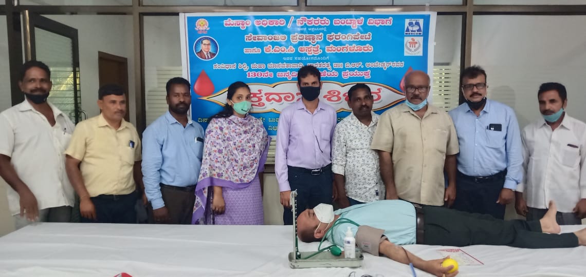 ಬಂಟ್ವಾಳ: ಭಾರತರತ್ನ ಡಾ. ಬಿ.ಆರ್. ಅಂಬೇಡ್ಕರ್ ಅವರ 130 ನೇ ಜನ್ಮದಿನಾಚರಣೆಯ ಪ್ರಯುಕ್ತ ಬಂಟ್ವಾಳ ಮೆಸ್ಕಾಂ ಉಪವಿಭಾಗದ ಅಧಿಕಾರಿಗಳು ಹಾಗೂ ನೌಕಕರರ ಆಶ್ರಯದಲ್ಲಿ ಸೇವಾಂಜಲಿ ಪ್ರತಿಷ್ಠಾನ ಫರಂಗಿಪೇಟೆ ಹಾಗೂ ಕೆಎಂಸಿ ಆಸ್ಪತ್ರೆ ಮಂಗಳೂರು ಸಹಯೋಗದೊಂದಿಗೆ ರಕ್ತದಾನ ಶಿಬಿರ ಕಚೇರಿಯಲ್ಲಿ ನಡೆಯಿತು. ಮೆಸ್ಕಾಂ ಬಂಟ್ವಾಳ ವಿಭಾಗದ ಕಾರ್ಯನಿರ್ವಾಹಕ ಎಂಜಿನಿಯರ್ ರಾಮಚಂದ್ರ ಎಂ. ಉದ್ಘಾಟಿಸಿದರು. ಮುಖ್ಯ ಅತಿಥಿ ಸೇವಾಂಜಲಿ ಪ್ರತಿಷ್ಠಾನದ ಆಡಳಿತ ಟ್ರಸ್ಟಿ ಕೆ. ಕೃಷ್ಣ ಕುಮಾರ್ ಪೂಂಜ ಅವರ ಸೇವಾ ಕಾರ್ಯಗಳನ್ನು ಗುರುತಿಸಿ ಸನ್ಮಾನಿಸಲಾಯಿತು. ಬಂಟ್ವಾಳ ಮೆಸ್ಕಾಂನ ಸಹಾಯಕ ಕಾರ್ಯನಿರ್ವಾಹಕ ಎಂಜಿನಿಯರ್ಗಳಾದ ಪ್ರಶಾಂತ್ ಪೈ, ನಾರಾಯಣ ಭಟ್, ಬೆಳ್ತಂಗಡಿ ಉಪವಿಭಾಗದ ಎಇಇ ಶಿವಶಂಕರ್, ವಿಟ್ಲ ಉಪವಿಭಾಗದ ಎಇಇ ಪ್ರವೀಣ್ ಜೋಷಿ, ಮೆಸ್ಕಾಂ ಲೆಕ್ಕಾಧಿಕಾರಿ ಅನ್ನಪೂರ್ಣ, ಎಇಇ ಭವತಾರಿಣಿ, ಲೆಕ್ಕಾಧಿಕಾರಿ ಚಂದ್ರಶೇಖರ್, ಕರ್ನಾಟಕ ವಿದ್ಯುತ್ ಪ್ರಸರಣ ನಿಯಮಿತ ನೌಕರರ ಸಂಘದ ಕೇಂದ್ರ ಕಾರ್ಯಕಾರಿ ಸಮಿತಿ ಸದಸ್ಯ ಶಂಕರ್ ಪ್ರಕಾಶ್ ಕೆ. , ಪ.ಜಾತಿ ಮತ್ತು ಪಂಗಡ ಕಲ್ಯಾಣ ಸಂಸ್ಥೆಯ ಕೇಂದ್ರ ಕಾರ್ಯಕಾರಿ ಸಮಿತಿ ಸದಸ್ಯ ದಿನೇಶ್ ಕೆ. ಮತ್ತಿತರರು ಉಪಸ್ಥಿತರಿದ್ದರು. ಕೆಎಂಸಿ ಬ್ಲಡ್ ಬ್ಯಾಂಕಿನ ಭವಾನಿ ಶಂಕರ್, ಸೇವಾಂಜಲಿ ಪ್ರತಿಷ್ಠಾನದ ಪದ್ಮನಾಭ ಕಿದೆಬೆಟ್ಟು, ದೇವದಾಸ್ ಶೆಟ್ಟಿ ಕೊಡ್ಮಾಣ್, ಎಂ.ಕೆ. ಖಾದರ್, ಪ್ರಶಾಂತ್ ಮೊದಲಾದವರು ಹಾಜರಿದ್ದರು. ಮೆಸ್ಕಾಂನ ಸಿದ್ದರಾಜು ಸ್ವಾಗತಿಸಿದರು. ಆನಂದ್ ಎಂ. ವಂದಿಸಿದರು. ಬಳಿಕ ಮೆಸ್ಕಾಂ ಸಿಬ್ಬಂದಿಗಳು ರಕ್ತದಾನ ಮಾಡಿ 76 ಯುನಿಟ್ ರಕ್ತ ಸಂಗ್ರಹವಾಯಿತು.
