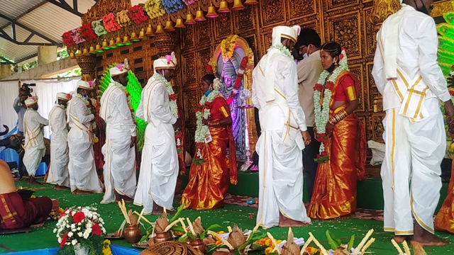 ವಧೂವರರು ಸಾಮೂಹಿಕ ವಿವಾಹದ ರೂವಾರಿ ಕ್ಲಬ್ನ ಸ್ಥಾಪಕಾಧ್ಯಕ್ಷ ಎಂ.ತುಂಗಪ್ಪ ಬಂಗೇರ ಅವರ ಕಾಲಿಗೆರಗಿ ಆಶೀರ್ವಾದ ಪಡೆದರು. ಕಂಬಳದ ತೀರ್ಪುಗಾರ ರಾಜೀವ ಶೆಟ್ಟಿ ಎಡ್ತೂರು ಅವರು ನೂತನ ವಧು-ವರರಿಗೆ ಶುಭ ಹಾರೈಸಿದರು. ವಾರಾಂತ್ಯ ಕರ್ಫ್ಯೂ ದಿನ ನಿಯಮಗಳನ್ನು ಪಾಲಿಸಿ ಮದುವೆ ಕಾರ್ಯಕ್ರಮಕ್ಕೆ ಅವಕಾಶ ಇದೆ. ಅದರಂತೆ ಸ್ಥಳೀಯಾಡಳಿತದ ಅನುಮತಿ ಪಡೆದು ಪುಂಜಾಲಕಟ್ಟೆ ಸ್ವಸ್ತಿಕ್ ಫ್ರೆಂಡ್ಸ್ ಕ್ಲಬ್ ನಿಂದ ಸಾಮೂಹಿಕ ವಿವಾಹ ಕಾರ್ಯಕ್ರಮ ನಡೆಸಲಾಗಿದೆ. ಪ್ರತಿ ಜೋಡಿಯ ಇಬ್ಬರು ಮಾತ್ರ ಕಾರ್ಯಕ್ರಮದಲ್ಲಿ ಪಾಲ್ಗೊಳ್ಳಲು ಅವಕಾಶ ನೀಡಲಾಗಿದೆ. 16 ಜೋಡಿಗಳನ್ನು ಎರಡು ವಿಭಾಗ ಮಾಡಿ 8 ಜೋಡಿಗಳ ವಿವಾಹ ನೆರವೇರಿಸಿ ಅವರ ಸಂಬಂಧಿಕರೆನ್ನೆಲ್ಲಾ ಮನೆಗೆ ಕಳುಹಿಸಿದ ಬಳಿಕ ಇನ್ನೊಂದು ವಿಭಾಗದ 8 ಜೋಡಿಯ ವಿವಾಹ ನಡೆಸಲಾಗಿದೆ. ಕಾರ್ಯಕ್ರಮದಲ್ಲಿ ಭಾಗವಹಿಸುವ ಜೋಡಿಗಳಿಗೆ ಹಾಗೂ ಅವರ ಸಂಬಂಧಿಕರಿಗೆ ಮಾಸ್ಕ್ ಧರಿಸುವಂತೆ ಹಾಗೂ ಸಾಮಾಜಿಕ ಅಂತರ ಸಹಿತ ಸರಕಾರದ ಎಲ್ಲಾ ಮಾರ್ಗಸೂಚಿಗಳನ್ನು ಪಾಲಿಸುವಂತೆ ಮೊದಲೇ ಸೂಚನೆ ನೀಡಲಾಗಿತ್ತು. ಮಾರ್ಗಸೂಚಿ ಉಲ್ಲಂಘಿಸಿಲ್ಲ: ಕಾರ್ಯಕ್ರಮದಲ್ಲಿ ಸರಕಾರದ ಯಾವುದೇ ಮಾರ್ಗಸೂಚಿಯನ್ನು ಎಲ್ಲೂ ಉಲ್ಲಂಘಿಸಿಲ್ಲ. ಈ ಬಗ್ಗೆ ಅಪಪ್ರಚಾರ ನಡೆಸುವುದು ಸರಿಯಲ್ಲ ಎಂದು ಈ ಸಂದರ್ಭ ಸ್ವಸ್ತಿಕ್ ಫ್ರೆಂಡ್ಸ್ ಕ್ಲಬ್ ಅಧ್ಯಕ್ಷ ಪ್ರಶಾಂತ್ ಪುಂಜಾಲಕಟ್ಟೆ ತಿಳಿಸಿದ್ದಾರೆ.